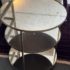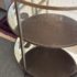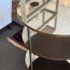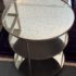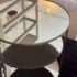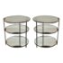 Design Plus Gallery presents a Percy Antique Brass + Mirror Side Tables by Arteriors Home. An antique feel with a clean, streamlined construction built for the 21st century. Its metal base is a slender layered piece. Three extended legs add a nice vertical and linear touch. Layers of inlaid glass have a subtle antique and elegant reflective quality. It makes for the perfect reading buddy. Rest a neat table lamp atop of it and store your favorite books in the shelves below. In good condition, minor wear from usage.