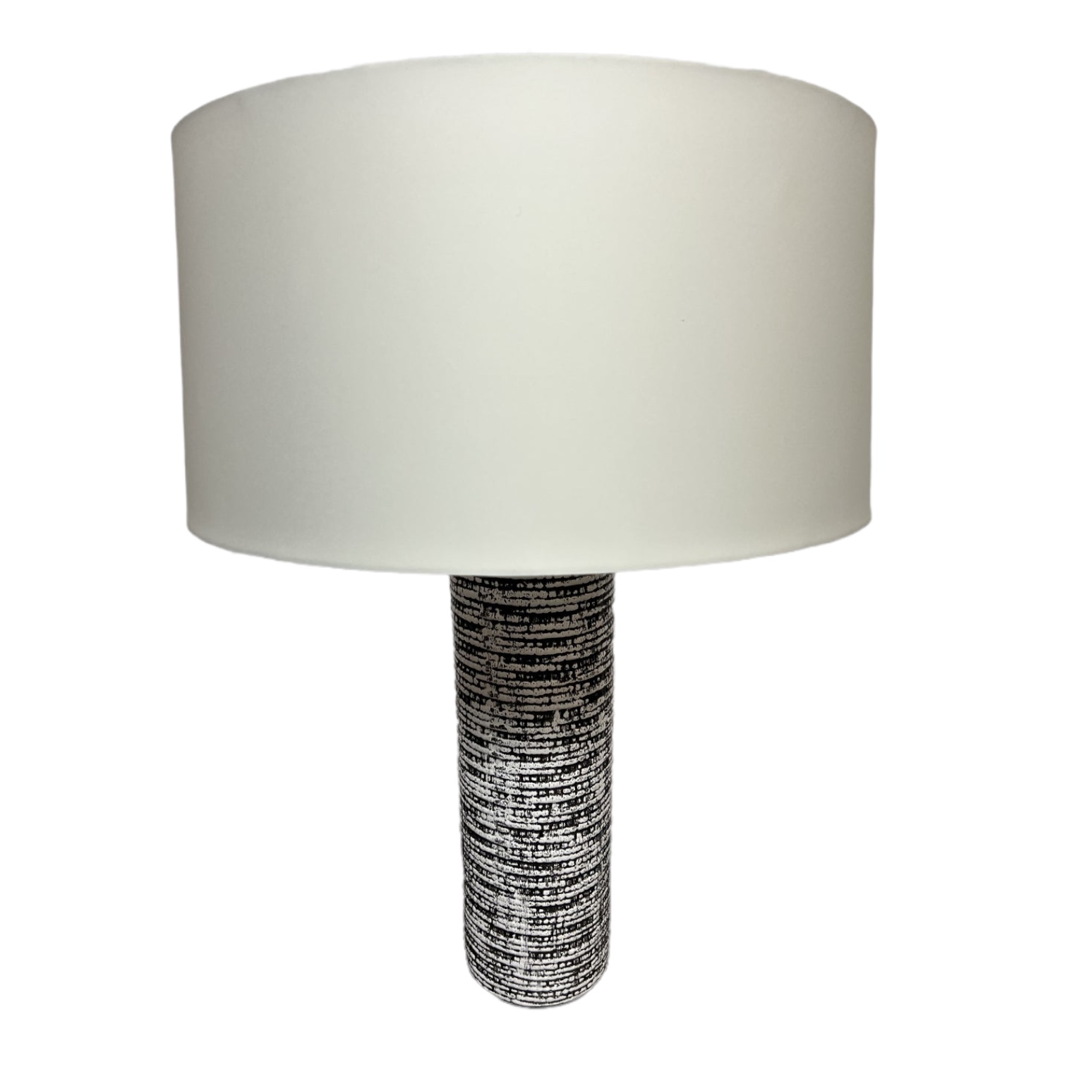 Design Plus Gallery presents the Nico Table Lamp by Arteriors. The simple column silhouette in ceramic features an Ivory Glaze with a Charcoal Wash. Simply finished with an Ivory fabric drum shade and matching ceramic finial. 150 watt max, 120 volt A19 3-Way type medium base incandescent bulb is required, but not included.