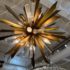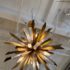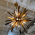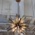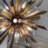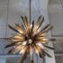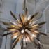 Design Plus Gallery presents the Antiqued Brass Sputnik Style Small Waldorf Chandelier from Arteriors. Depth and scale are transformative features in this eight-light chandelier. Angular steel shards in varying sizes extend from the center creating a vibrant form finished in antique brass. Clear glass rods are interspersed throughout adding a nice contrast from the metal.