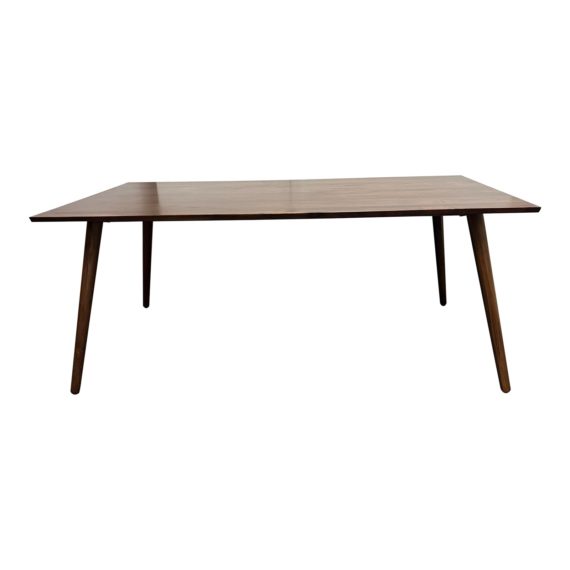 Design Plus Gallery presents a Seno Walnut Dining Table by Article. Constructed with solid walnut wood. The legs are round and angled outwards. The top is rectangular. Seats up to six. Minor wear consistent with use; table is in good condition.