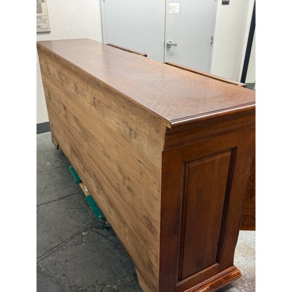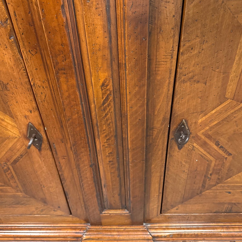 Design Plus Gallery presents the San Marco Credenza from Artitalia Group’s Vere Antichita Collection. The credenza is a handcrafted piece of furniture entirely produced near Venice, Italy, by second and third generation artisans with over half a century of experience. Its polishing enhances the wood grain with a complex process of fifteen hand-applied coatings. The finishing consists of a soft, natural beeswax layer, which makes the surface particularly bright and brilliant. The San Marco credenza has an architectonic influence from the Tuscan region in the 1500s can be recognized by the sober linearity of the structural concept. It is still in good condition for its usage. Made in Italy.