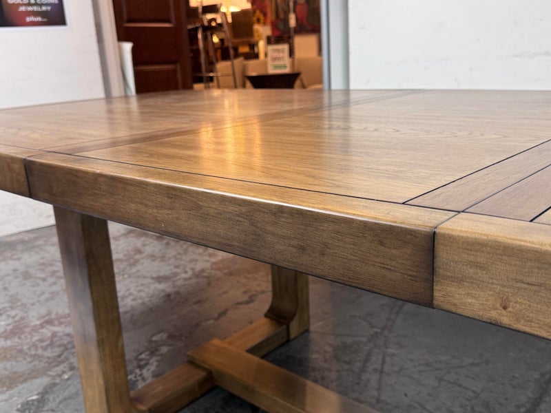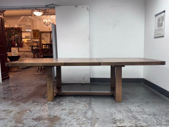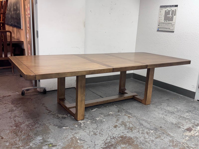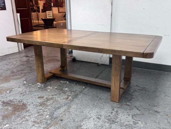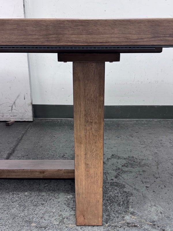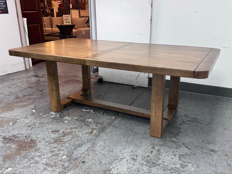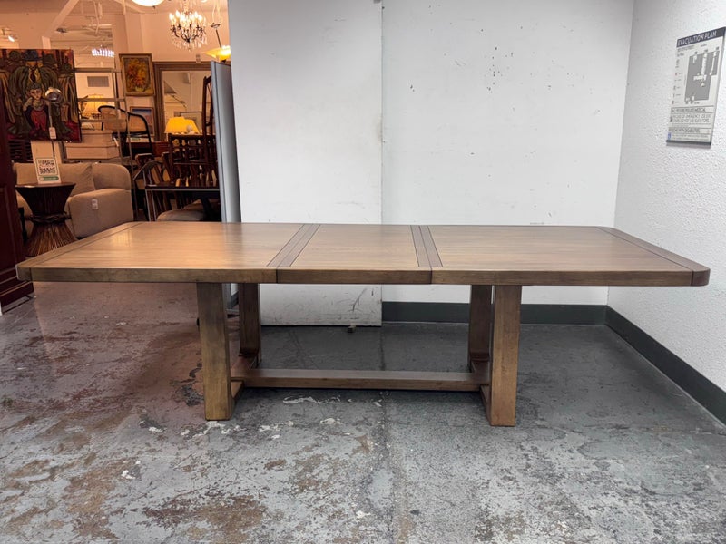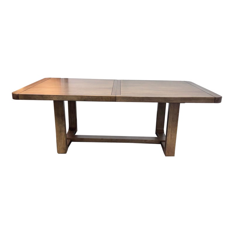 Design Plus Gallery presents the Cabalynn Extension Dining Table from Ashley Furniture. This dining extension table sits comfortably at the intersection of modern lodge and farmhouse aesthetics. A smooth extension feature serves up plenty of space for family and guests, defining your dining room with reliable function and style. In good condition with minor visible wear.