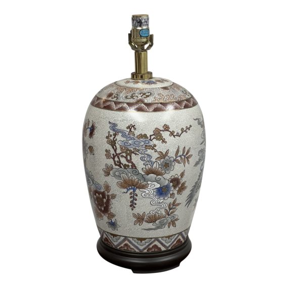Design Plus Gallery presents an Oriental Asian Blue + Brown Flowers painted on Porcelain. The scalloped cone lampshade is included, and highlight the organic beauty displayed on the vase itself. These are in good condition with signs of wear that are consistent with age and usage.