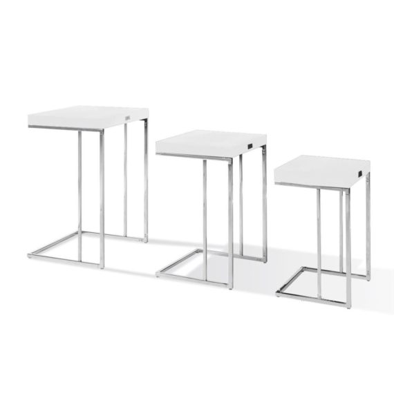 Design Plus Gallery presents a Set of three Amelia Nesting Tables by Vig Furniture. From the A&X Luxury Casa Collection. Brushed steel frames with faux white crocodile leather surfaces. A lacquered coating for a fine shine. Used them together or separately.