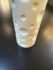 Design Plus Gallery presents a Vintage Porcelain Vase by Bahari. The smooth column shaped vessel has a varied divot pattern that adds texture to the simple white silhouette. Water safe condition is unknown. Little wear, condition is good for age and use.