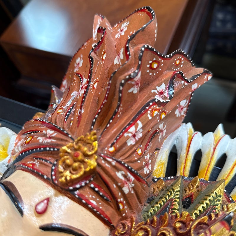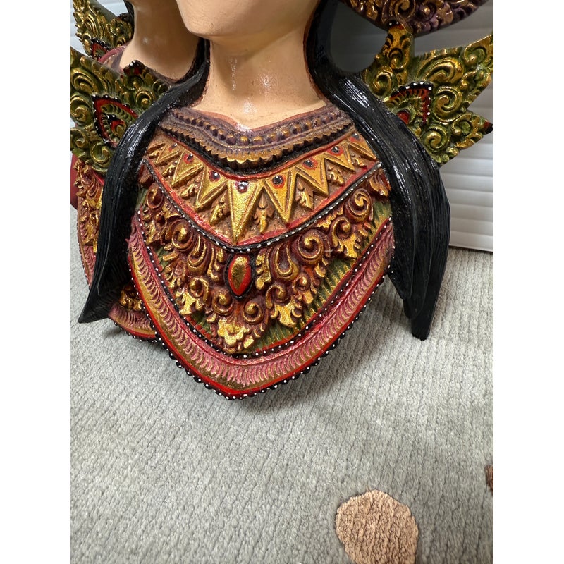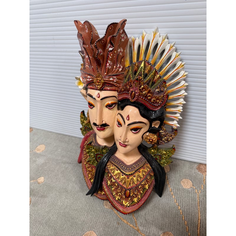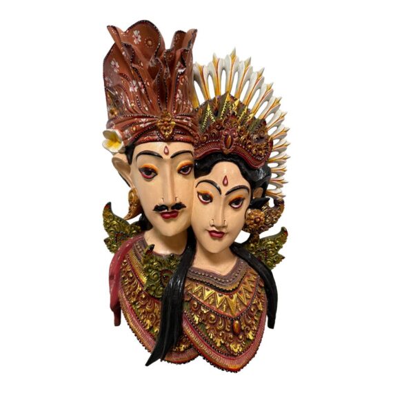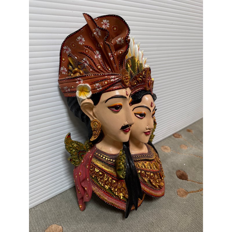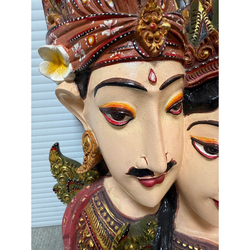 Design Plus Gallery presents a Wall Sculpture of Kecak Janger Dancers from Balinese Culture. This was decoration represents a couple in traditional attire for the Janger dance. The Janger Dance originated in the 1920s in Bali and it represents scenes from the Ramayana. Made of wood and hand painted. Is in good condition with minimal wear for its usage.