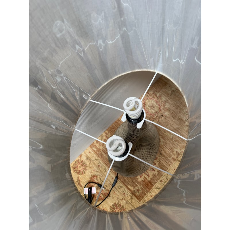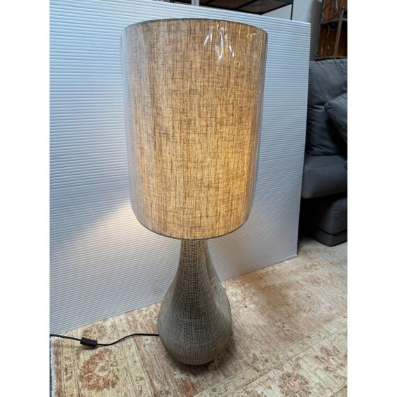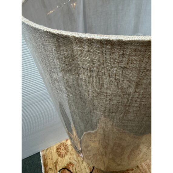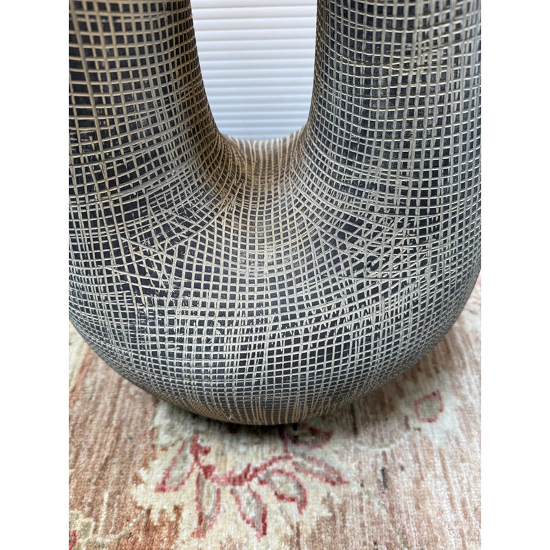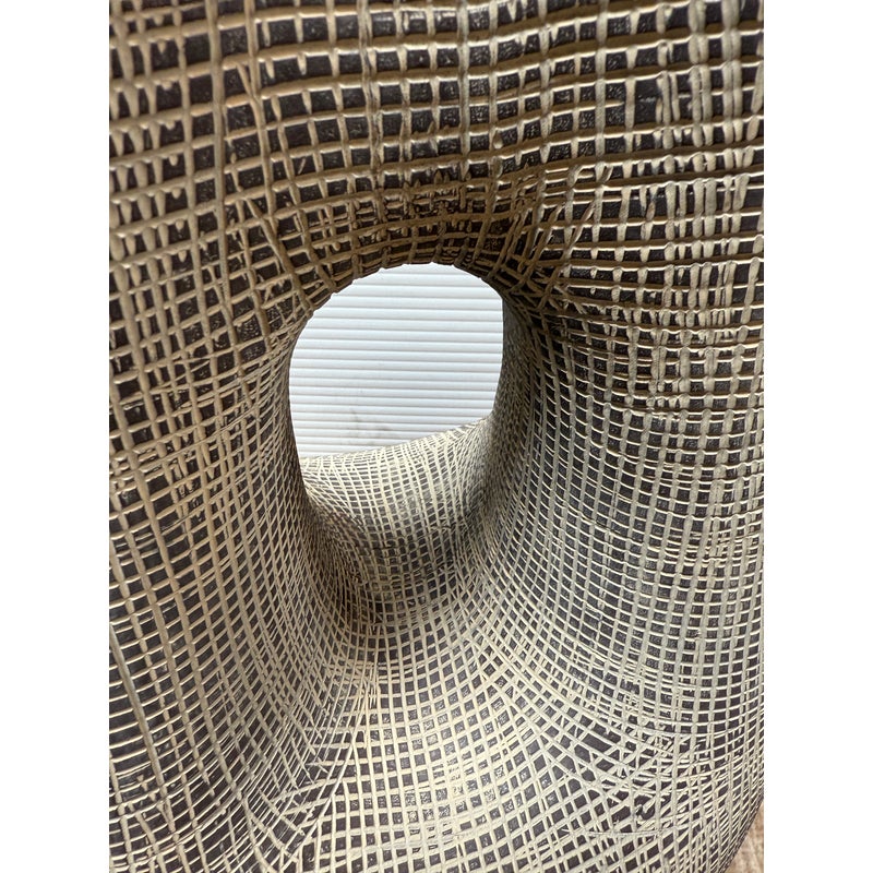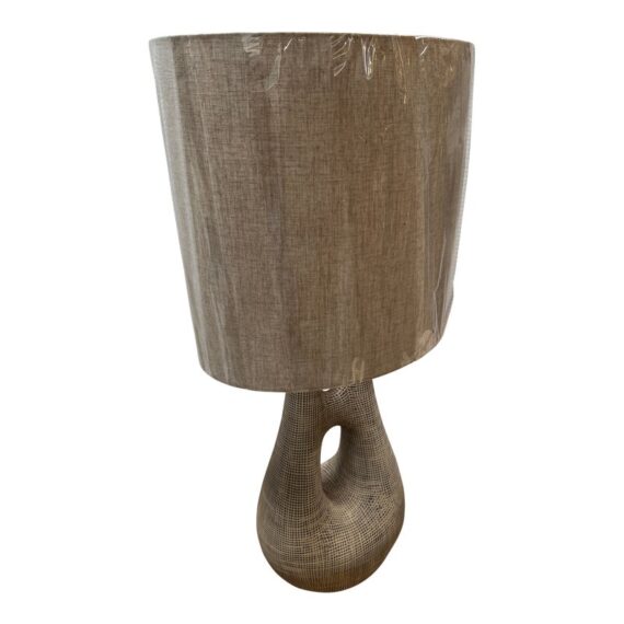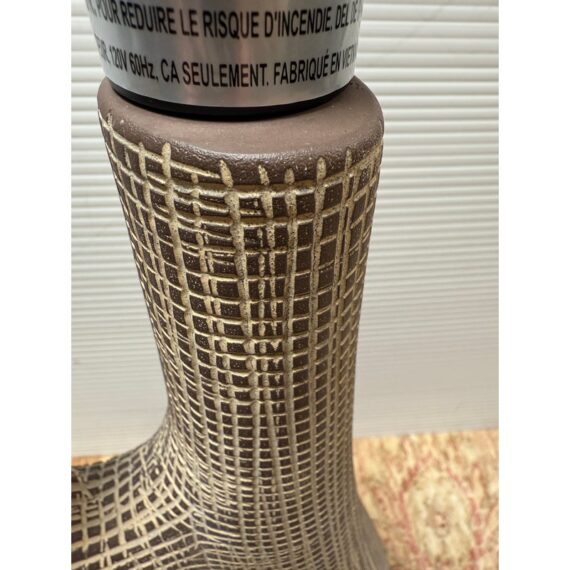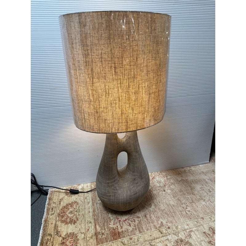 Design Plus Gallery presents the Draco Table Lamp from Banana Republic Home. The Draco collection is an organic modern style with highly texturized body with monochromatic coloring. This lamp and shade is a in an earthy brown tone with both offering a taller height than width. The basket-weave ceramic finish is a study in rich and soft, sculptural shapes. This style has been discontinued by the brand. Is in good condition with minimal usage.