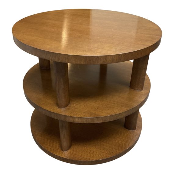 Design Plus Gallery presents a Round Tiered Occasional Table designed by Barbara Barry for Baker Furniture. This outstanding three-tiered table is solid mahogany with column details. This piece would make an excellent side table . This piece is in good condition with minor wear from use.