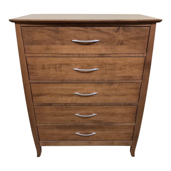 Design Plus Gallery presents a Five Drawer Dresser by Baronet. Simple lines in a medium finish, the drawer pulls have a soft curve that echo the slight curve of the sides of the dresser. Medium toned wood works well with other wood tones.