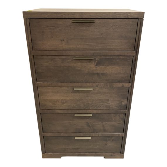 Design Plus Gallery presents a Taupe Highboy by Baronet silver. Made of taupe veneers for a transitional + rustic style which blends easily in modern spaces. Comes with five drawers of equal size. Hardware is a sleek steel linear pull. Each drawer functions on a smooth track system. Made in Canada.