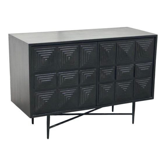Bassett Furniture Black Console Table With Geometric Cabinet Doors