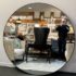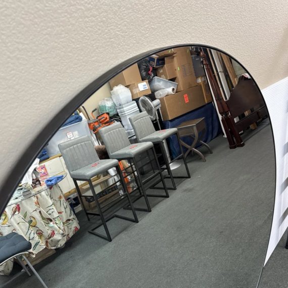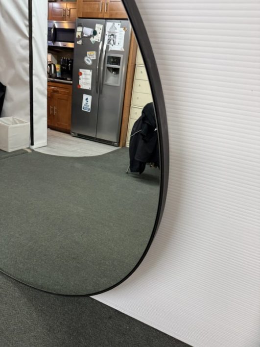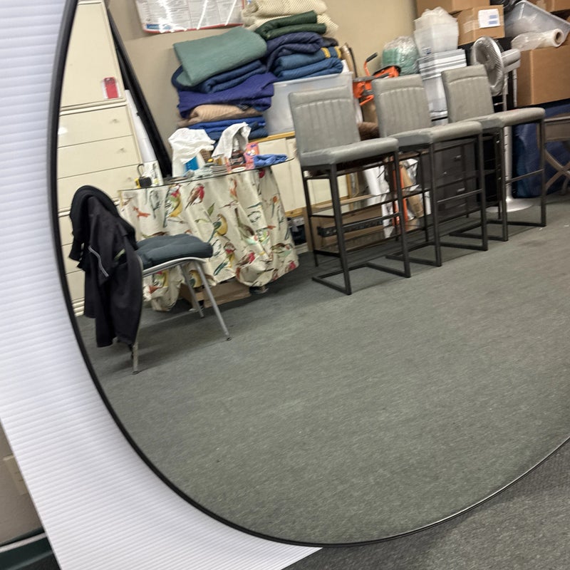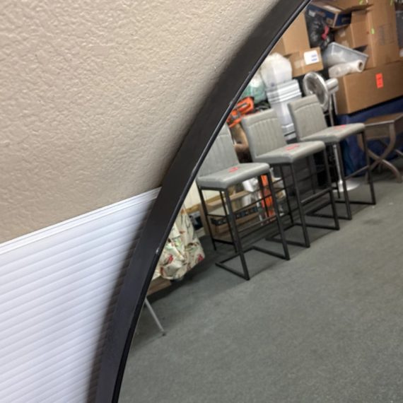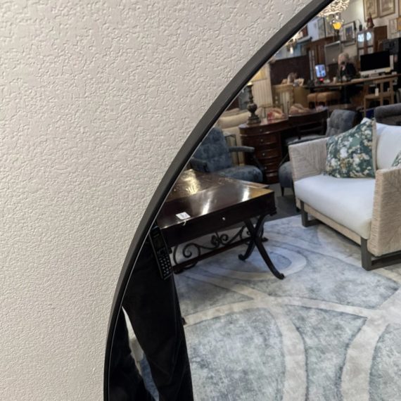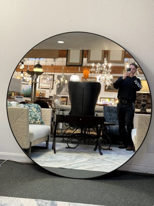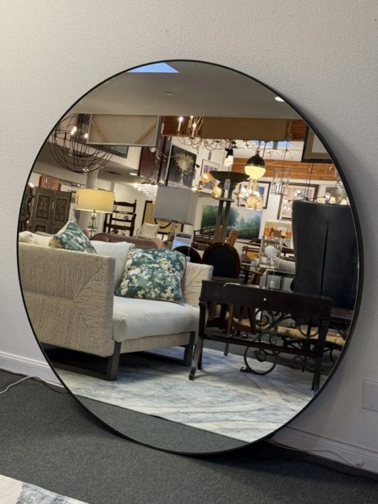 Design Plus Gallery presents a Levigne Black Wall Round by Bassett Mirror. A statement sized round wall mirror featuring a black iron frame. The hand crafted details are produced by a skilled artist for an organic modern feel. Wall Mounting: Two “D” ring attachment points for ease of access wall mounting is included to hang mirror. In good condition, minimal wear from use. Made in China.