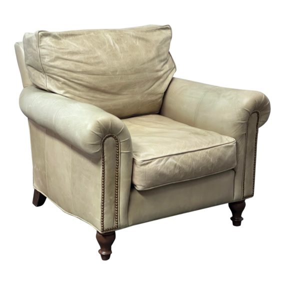 Benchmade Tipped Ivory Leather Arm Chair. Original Price: $4,300