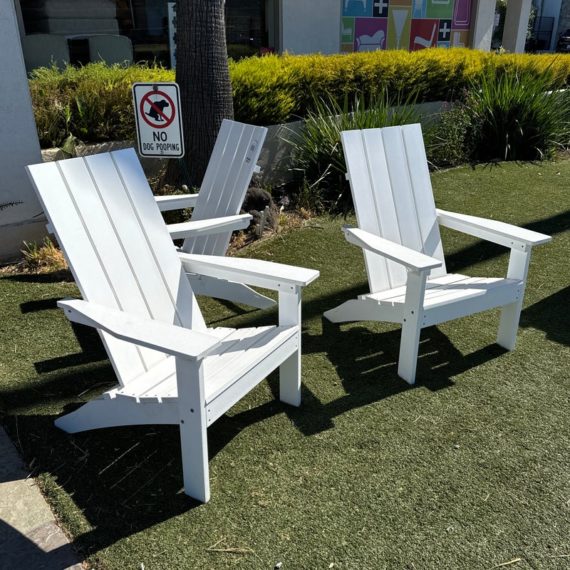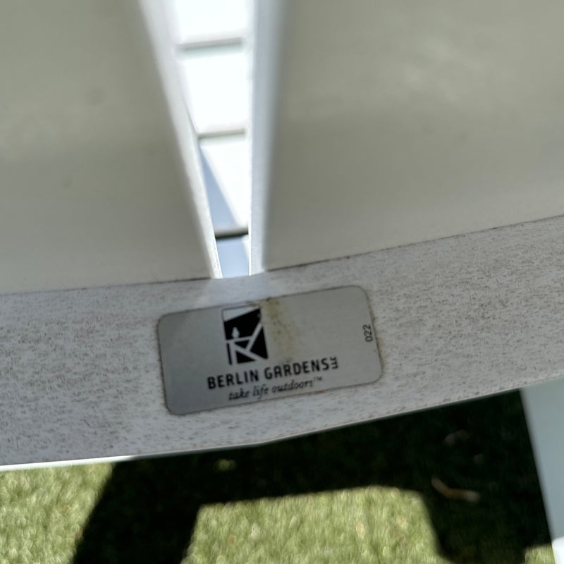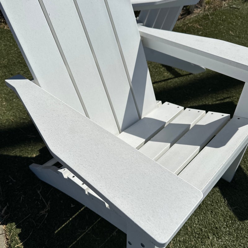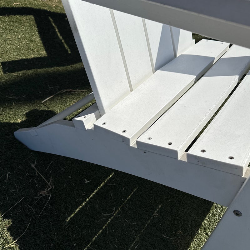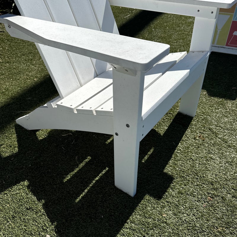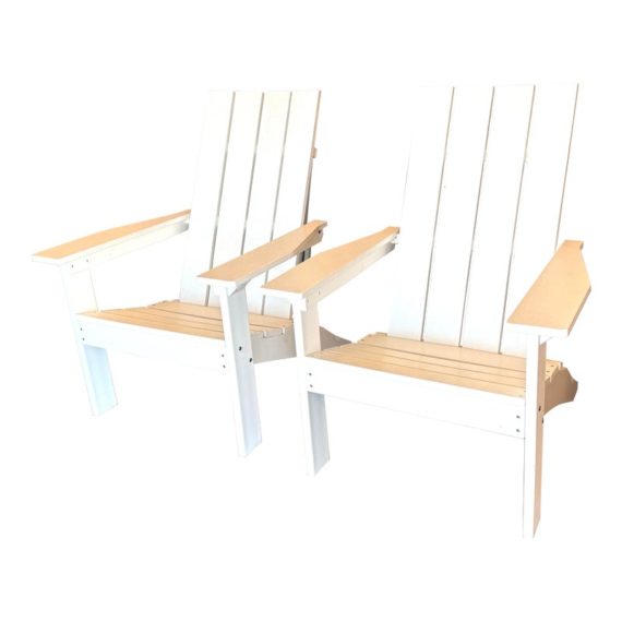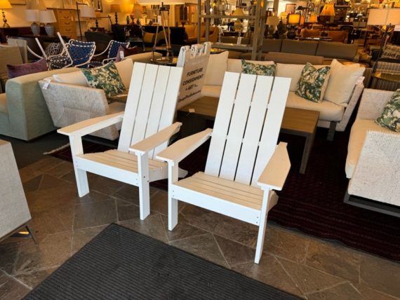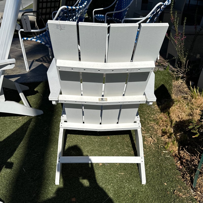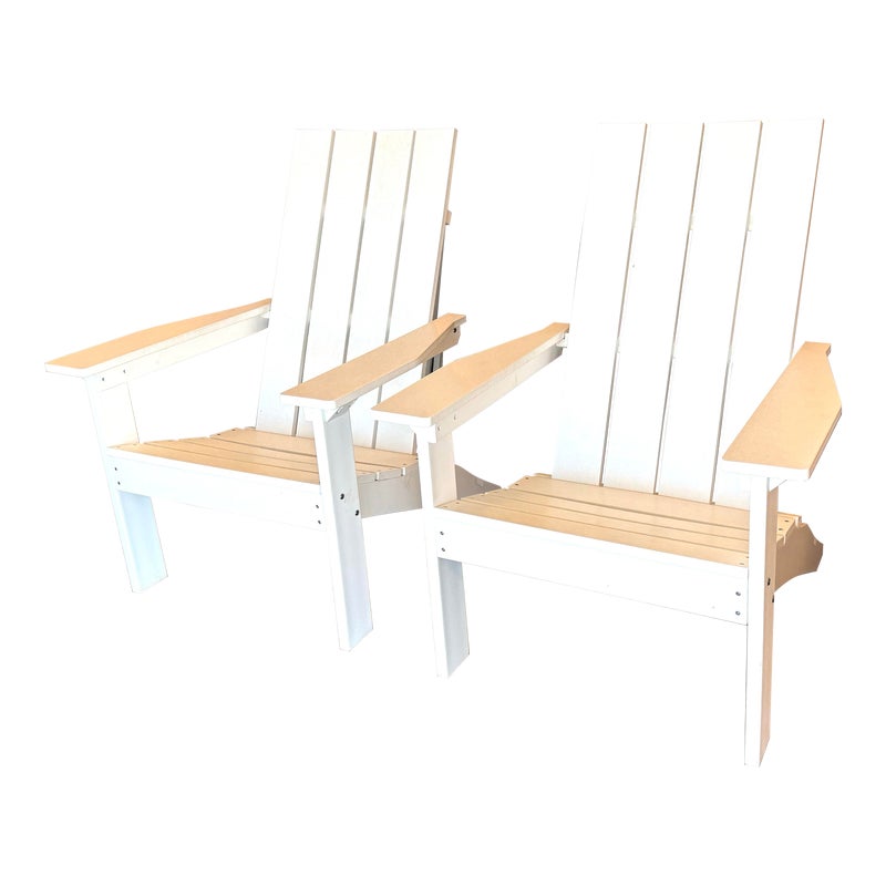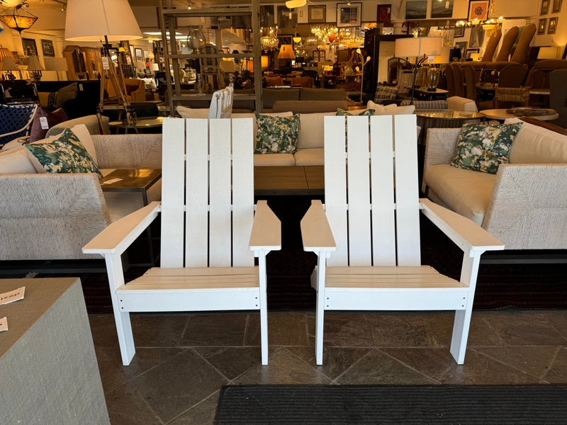 Design Plus Gallery presents the Mayhew Adirondack outdoor Chairs by Berlin Gardens. A perfect mash up of East-coast charm and comfortable all-weather durability. Crisp silhouette offers timeless appeal. Light surface wear; condition is good for age and use.