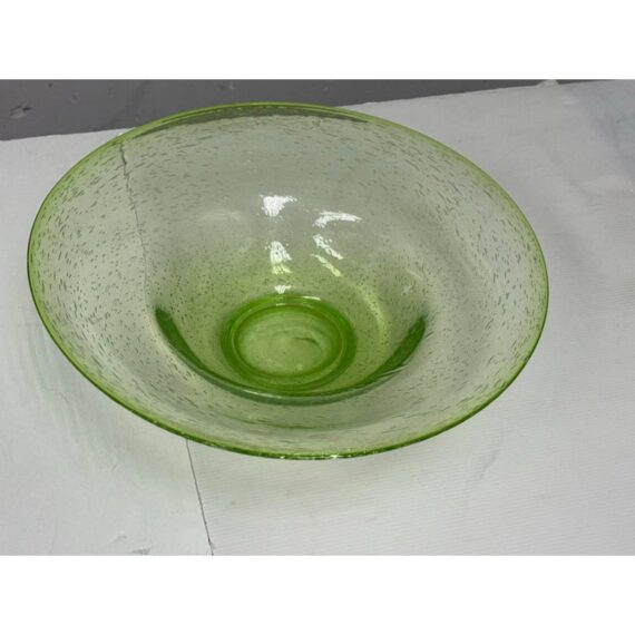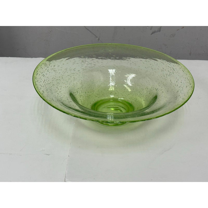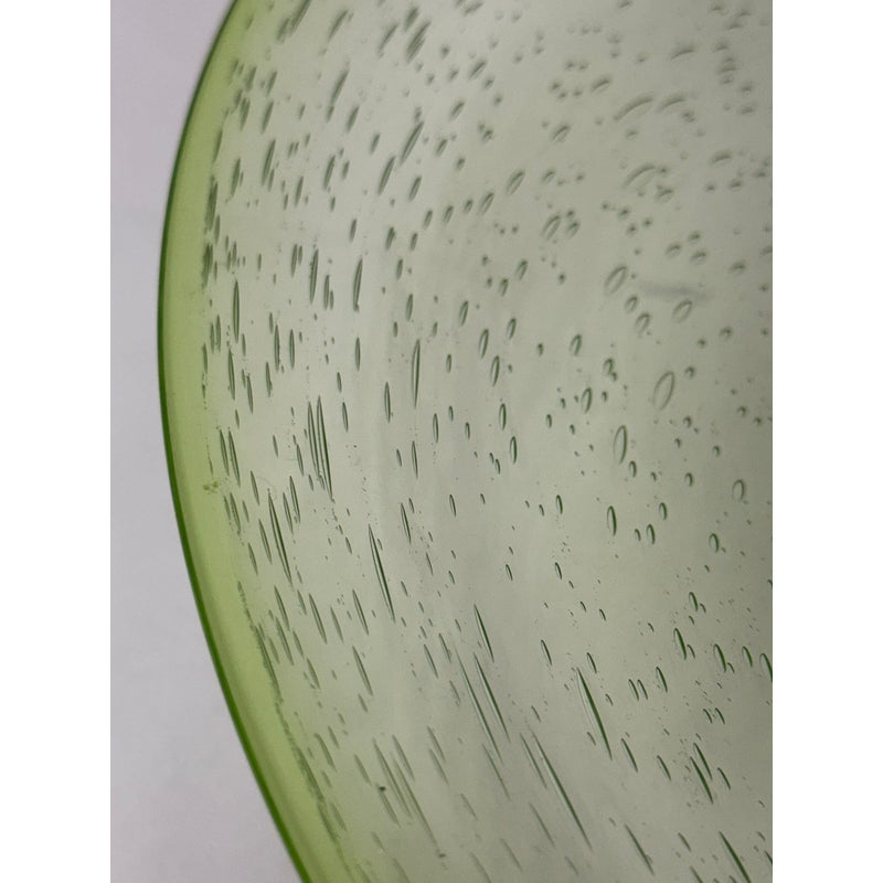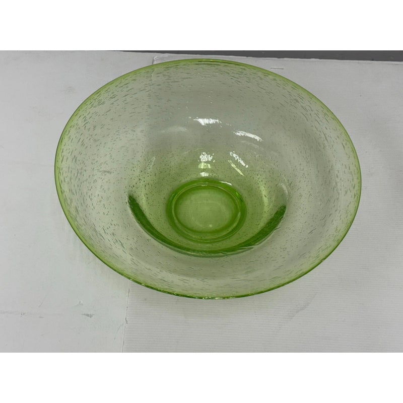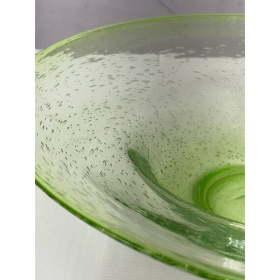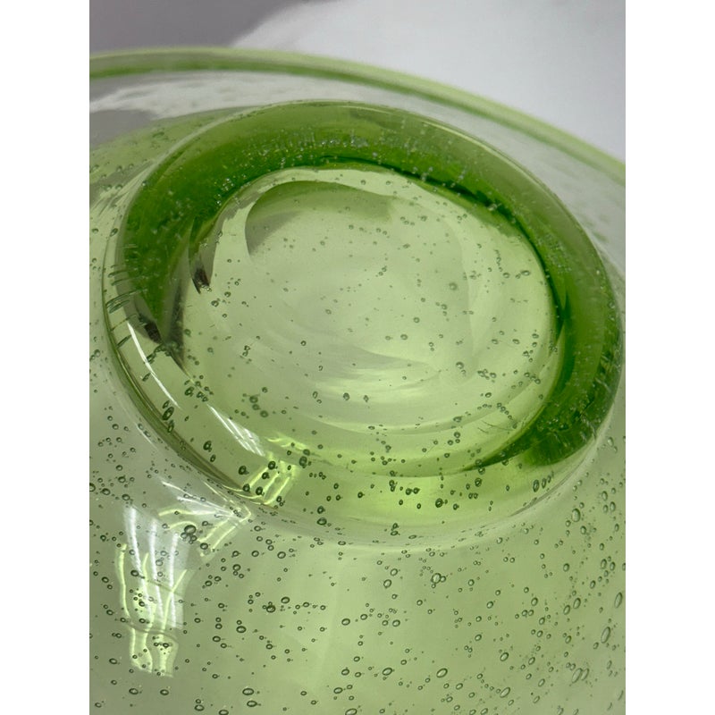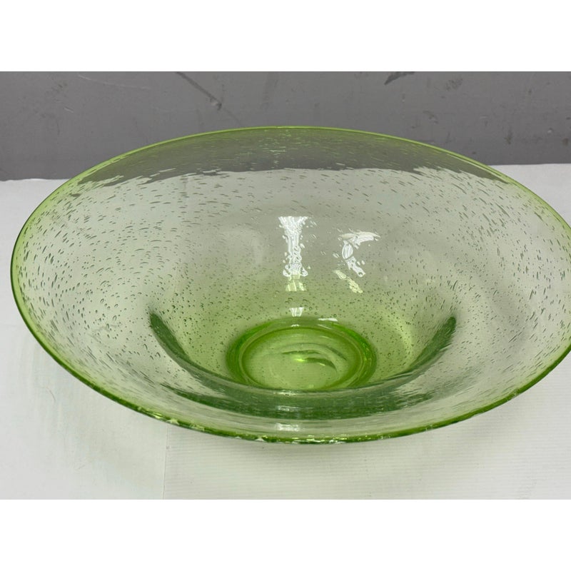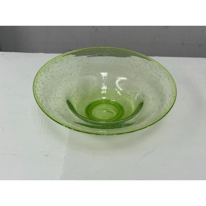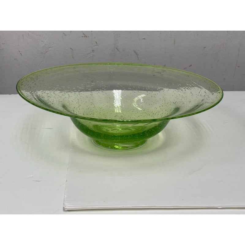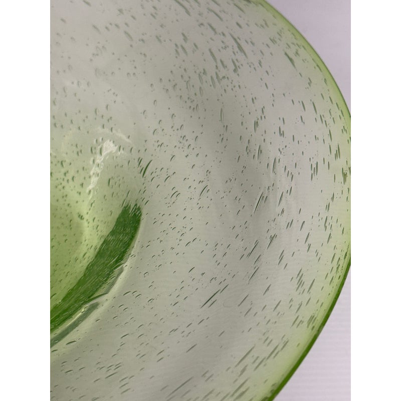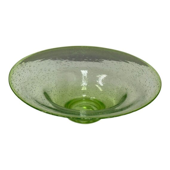 Design Plus Gallery presents a Hand Blown Bowl by Biot Glass, from the South of France. Hand-made, ensuring that no two pieces are exactly alike, and features the unmistakable hallmarks of skilled glassblowing: slight variations, subtle bubbles, and graceful curves. The glass itself boasts a clean and vibrant green hue, reminiscent of a freshly picked Granny Smith apple—bright, crisp, and full of life. Perfect as a functional serving dish or a decorative centerpiece, this Biot Glass bowl embodies a unique blend of modern color and traditional craftsmanship, bringing an energetic pop of color and timeless elegance to any table or interior. In good condition, minimal wear.