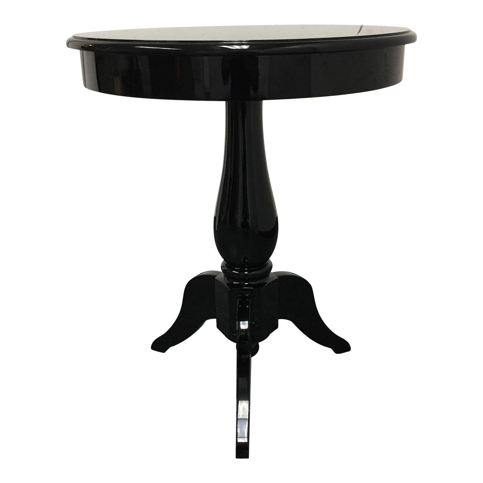 Design Plus Consignment Gallery presents a proper side table it a little black lacquer finish. Traditional in silhouette, the lacquer finish glass up this perfectly scaled accent piece.