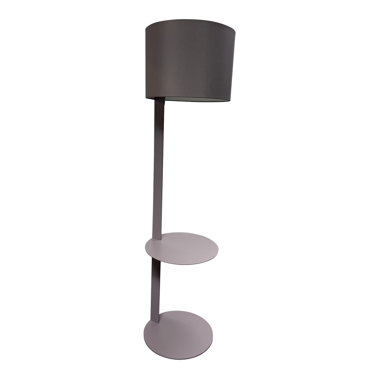 Design Plus Gallery presents the “Note” Floor Lamp in Oyster from Blu Dot. The Note pairs as a functional floor lamp with a cantilevered steel side table (and base). The linen drum shade is also cantilevered to directly illuminate the table surface–and comes in a color that matches the powder coat finish. The Note is the perfect multi-tasker next to the sofa or the bed. Has a bit of a wobble due to a missing front foot. Good condition, visible and minimal wear form usage.