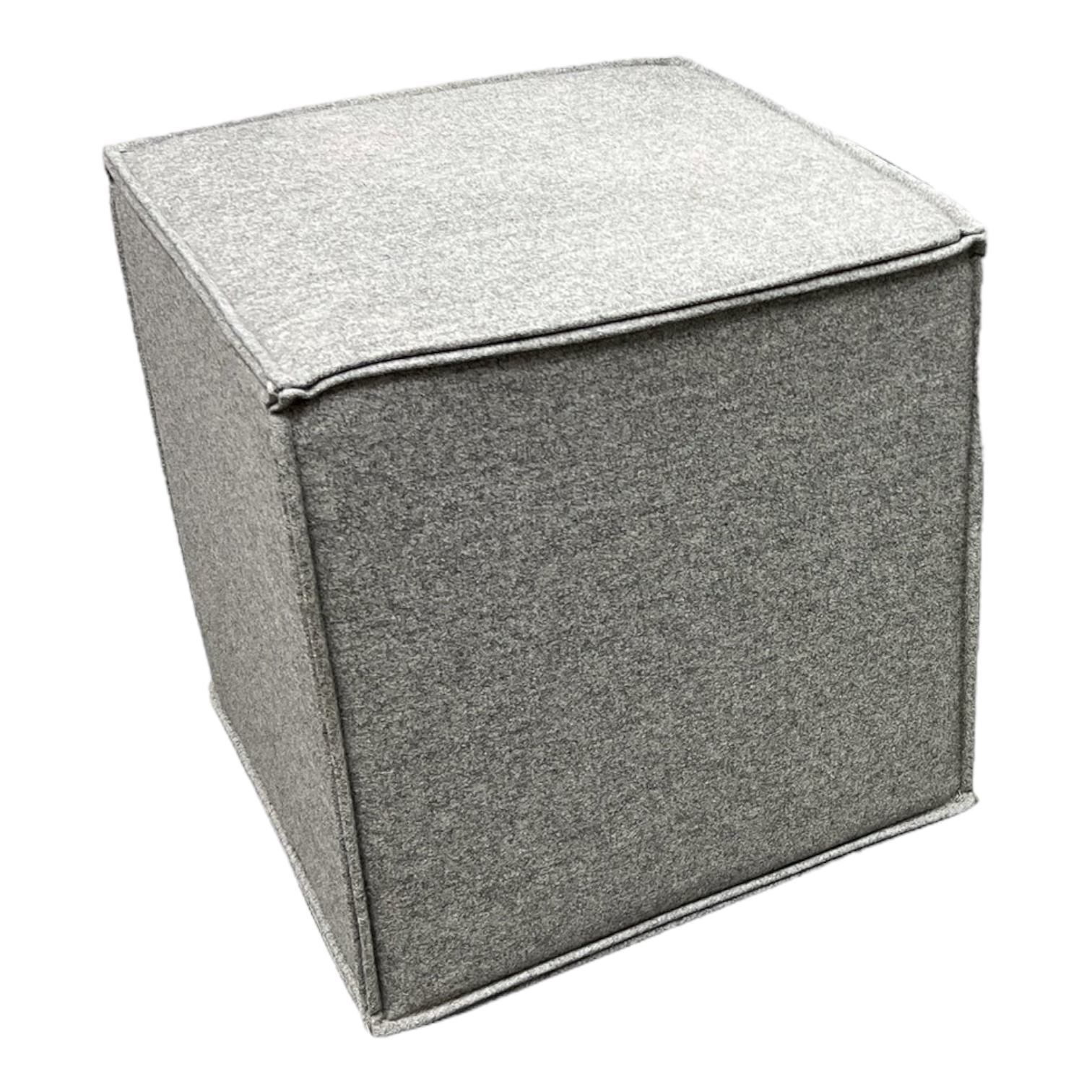 Design Plus Gallery presents a Gray Ottoman from Blu Dot. They are of a padded wood frame with French seams. Made of 80% wool felt they are also snuggly soft. They offer the flexibility of portability, going wherever you may need additional seating, even a side table, a bench when placed together, or an individual foot rest. Good condition with some wear.