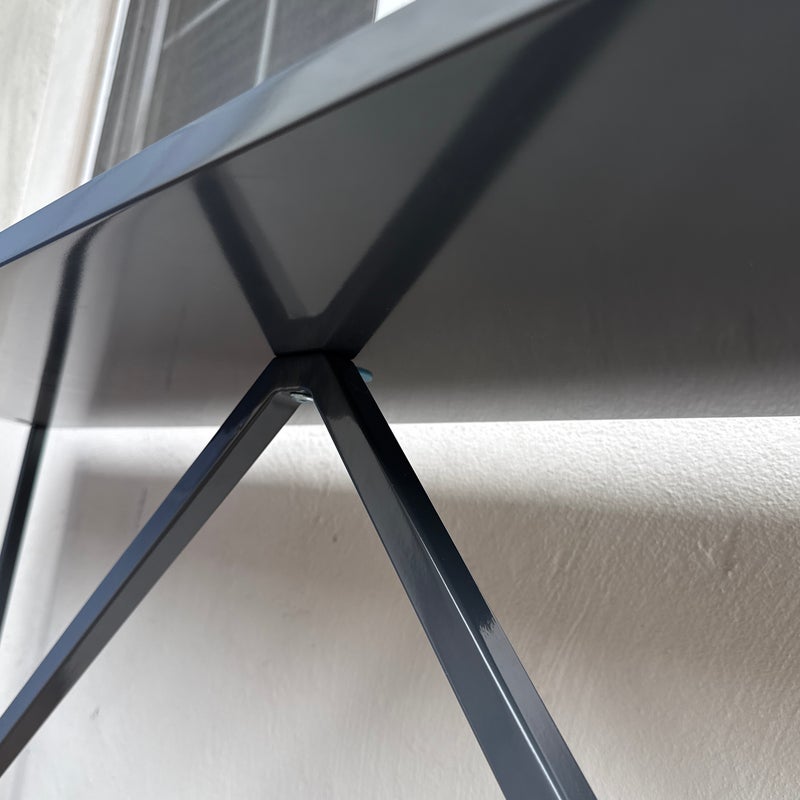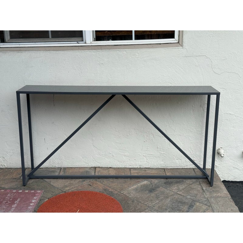 Design Plus Gallery presents the Strut Console Table from Blu Dot. In an entry way or living room the Strut will add a bold statement of urban style with its strong industrial lines and cheeky contemporary style. The frame is powder coated in a navy blue that shows minimal surface wear and is overall in good condition for its age + use.