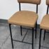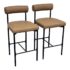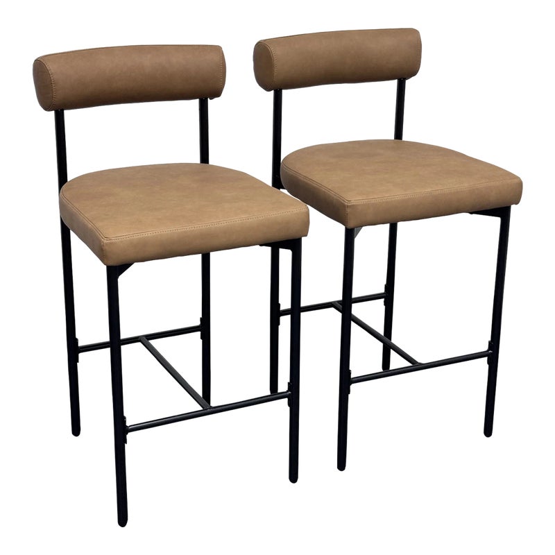 Design Plus Gallery presents a Pair of Counter Stools in Khaki Faux Leather by Bluefyn inc. The modern and stylish bar stools have great versatility and clean lines for your kitchen counter or bar height table. The backrest and metal footrest will enlighten your home with any decor theme. They are made of metal so the are wear and age resisting. They are in good condition with minimal signs of wear for their usage.