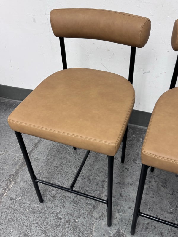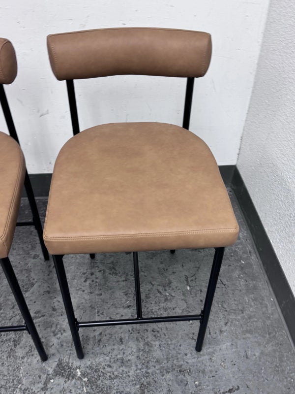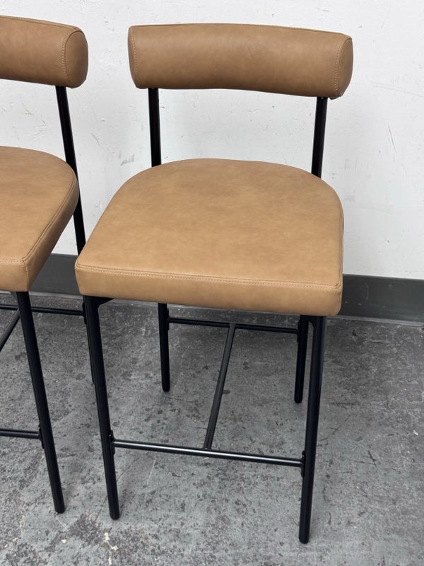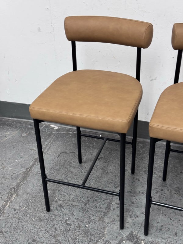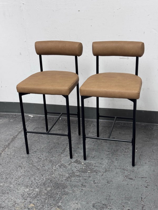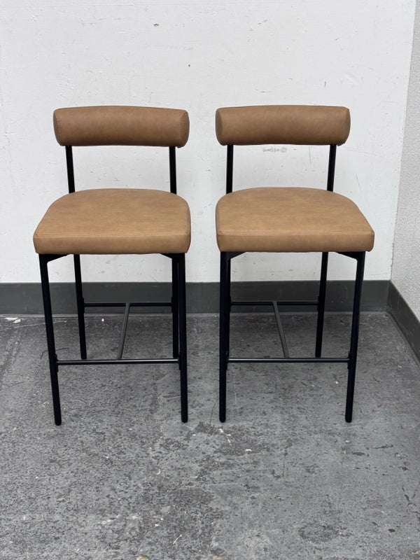 Blufyn Inc Khaki Faux Leather Counter Stools, a Pair. Original Price : $600