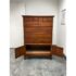 Design Plus Gallery presents a Chest of Drawers from Lexington Furniture with Design by Bob Timberlake. The chest is made of solid cherry wood and gives a reddish hue to the impeccable chest. The chest beckons you to come and organize all your possessions to perfection. The top of the chest has six miniature drawers with two half width size drawer beneath. The middle section offers three same depth drawers while the lowest position of the chest allows to cupboard doors to open for flat folded + bulky items, i.e. blankets. All hardware is present, with small ball shaped pulls in an aged brass tone. The dresser is signed with in good condition with minimal wear for its age + use. This is a discontinued model. Made in the USA.