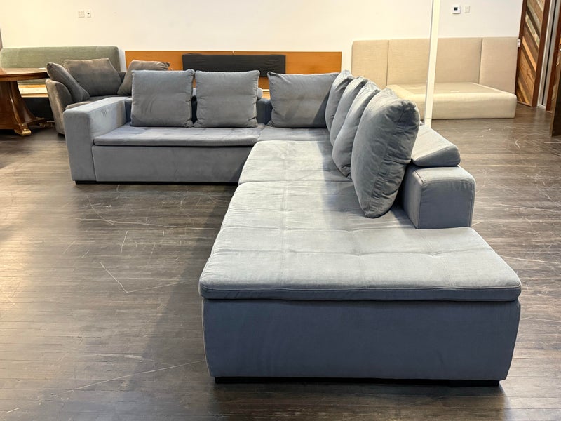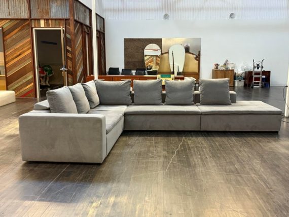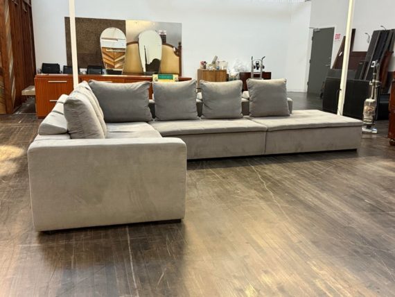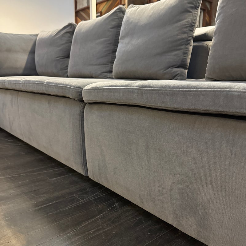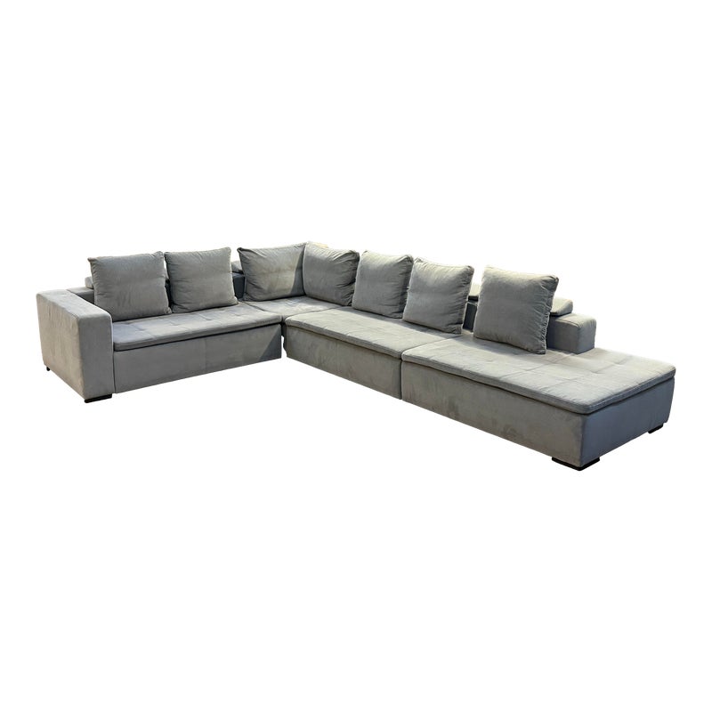 Design Plus Gallery presents the Gray Mezzo Modular Sectional from BoConcept. Quite a luxurious blend of contemporary design and comfort. This sectional boasts a sleek, streamlined silhouette with generous seating, making it a perfect centerpiece for modern living spaces. Upholstered in gray woven upholstery, the Mezzo exudes sophistication while offering exceptional durability. Is in good condition with minor wear that is consistent with usage.