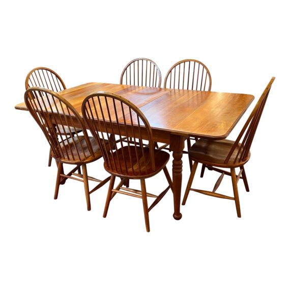 Borkholder Amish Cherry Extension Dining Table + Six Windsor Chairs