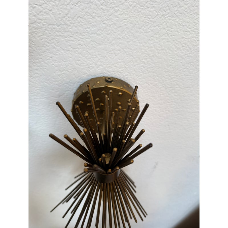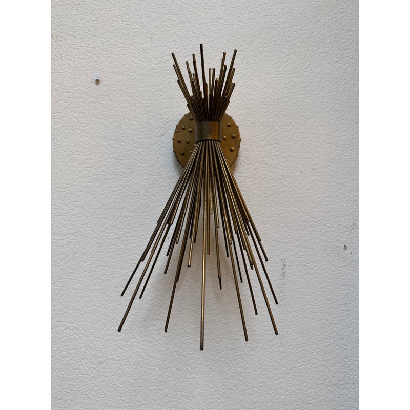 Design Plus Gallery presents a Pair of Spike Bundled Sconces in Brass. This dynamic duo have a mid-century design style that is complimentary to a bundle of household styles with their golden patina and effortlessly cool feel. They were refurbished by renowned Dogfork Lighting and are in good condition for their usage.