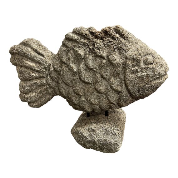 Design Plus Gallery presents a Brazilian Carved Coral Fish + Stand. Sculpted by hand from Brazilian coral from the island of Illabella. The sculpture is hosted on the stand with metal rods. Suitable for indoors or outdoors. Minor wear consistent with use; sculpture is in good condition.