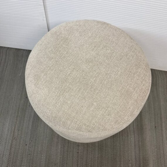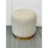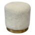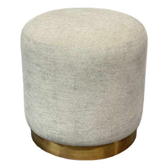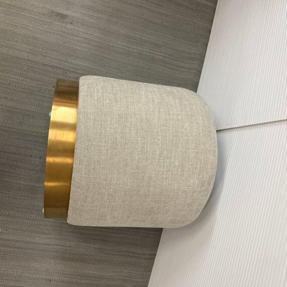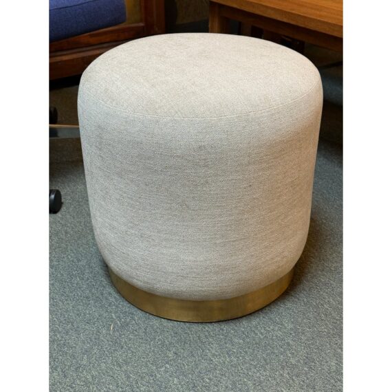 Design Plus Gallery presents the Arden Stool from Brownstone Furniture. This is the type of accent stool that you can place anywhere. It has a sandblasted teak wood base with a tailored seat upholstered in their Crypton Beach fabric. A nice brass trim is added the teak base for a shiny touch. It is in good condition with visible wear that is consistent with minimal usage.