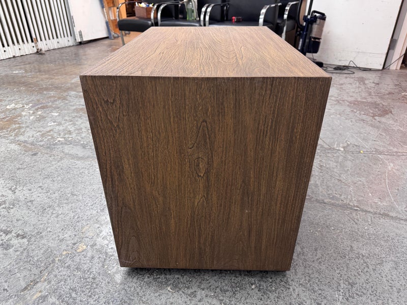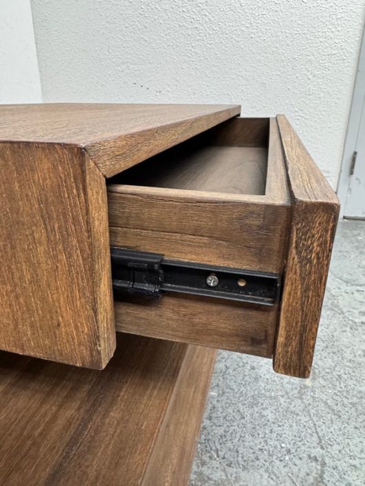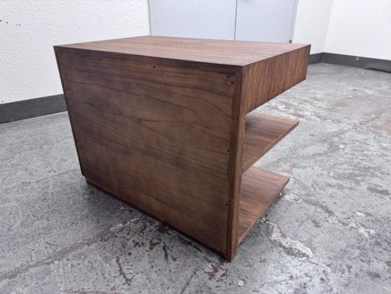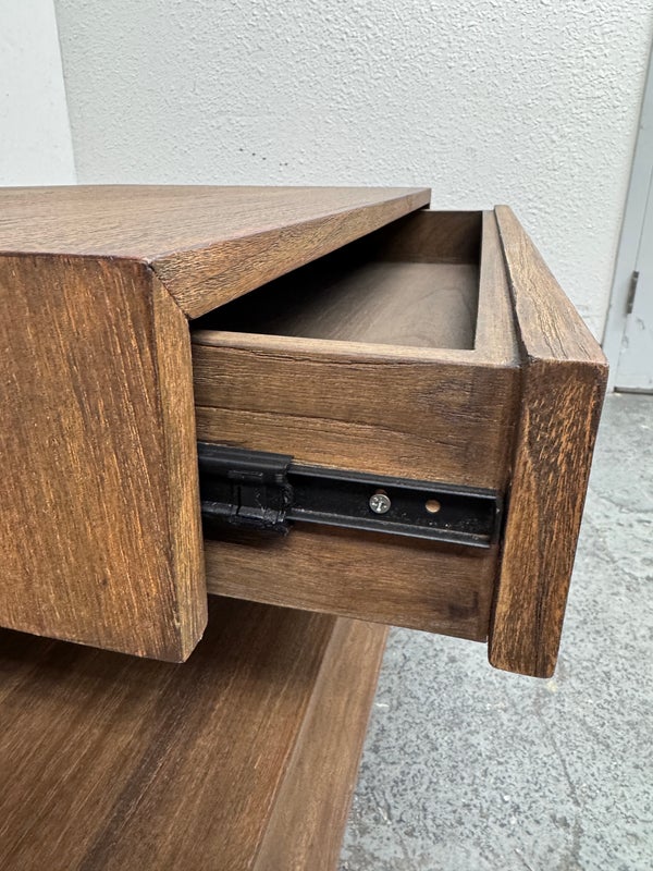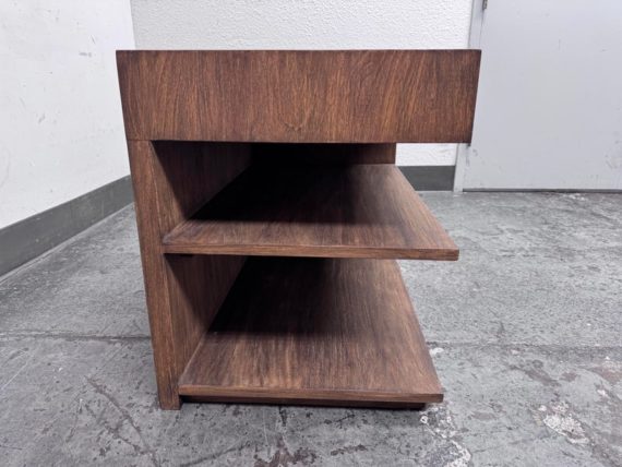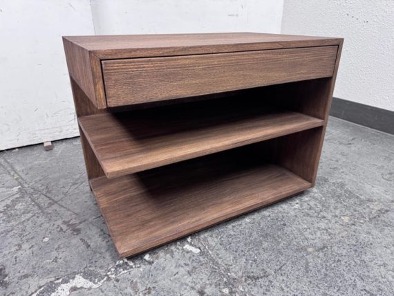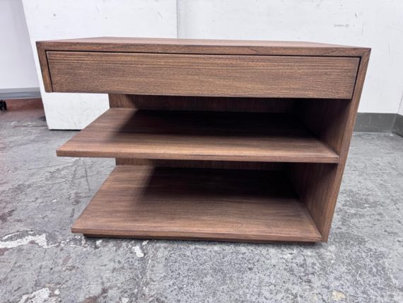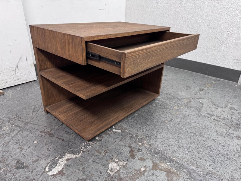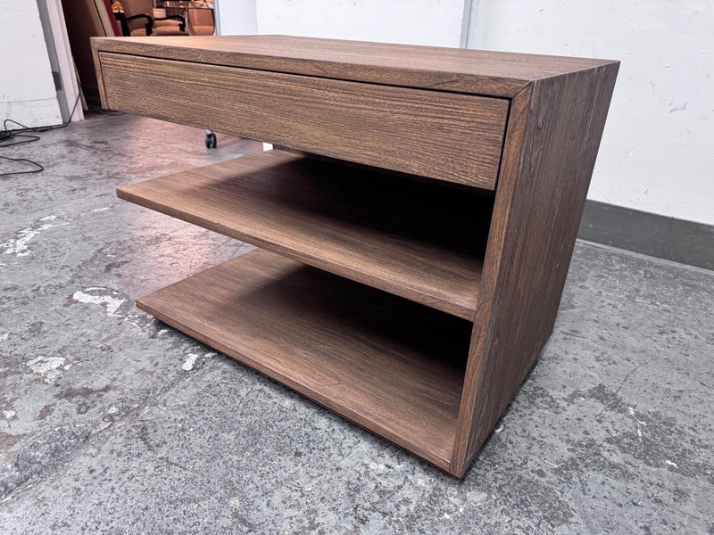 Design Plus Gallery presents the Laguna Nightstand from Brownstone Furniture. A textured, sandblasted nightstand for a gorgeous simplicity that fits well in so many settings. With its generous proportions and classic lines, this item is the definition of modern-day comfort. Has a single top drawer with diving center shelf. Is in good condition with visible minor wear that is consistent with its age + use.