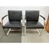 Design Plus Gallery presents a Pair of Cantilevered Leather + Chrome Chairs from Brueton. These chairs are a timeless classic with seamless stainless steel frames and hand crafted upholstered seat and backs. They have a streamlined shape that can work in the home, office, and more. Overall the chairs are in good condition with wear that is consistent with their usage.