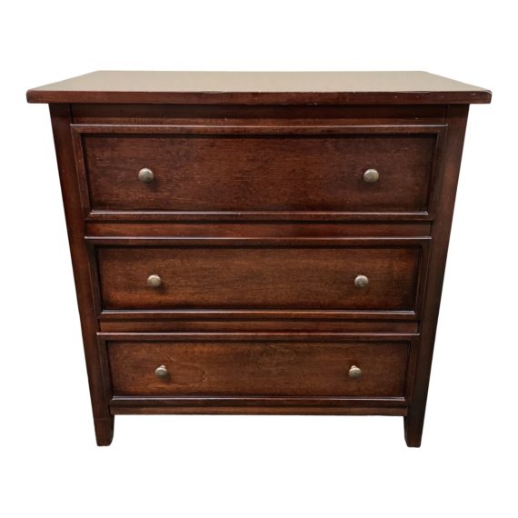 Design Plus Gallery presents a Small Dresser by Buying & Design. Traditional style and construction, this thre- drawer chest of drawers features panel fronts, dovetail joinery, rich wood stain and brass pulls. A great scale for child’s or guest room. Made in Italy.