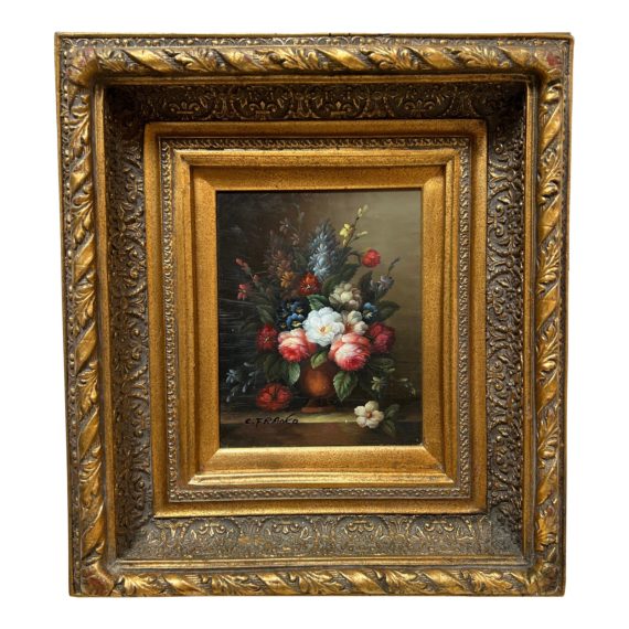 C. Franco Still Life With Flowers Painting + Gilt Frame