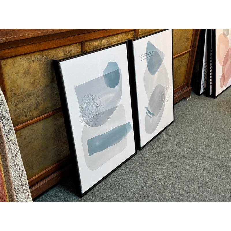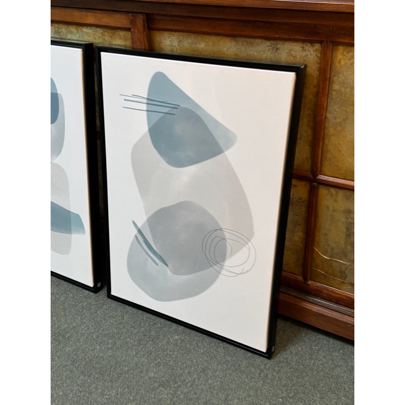 Design Plus Gallery presents the KUADRO Geometric Prints from Calligaris. These decorative prints can be hung to the wall either horizontally or vertically. The white print s have geometric shapes in different tones to bring harmoniously and organically decorate your space. They are both print on canvas and supplied with a 1 cm matte black wooden frame. The KUADRO collection is no longer in production with the brand and are in good condition for their usage.
