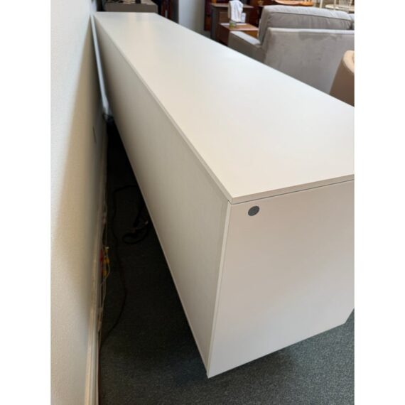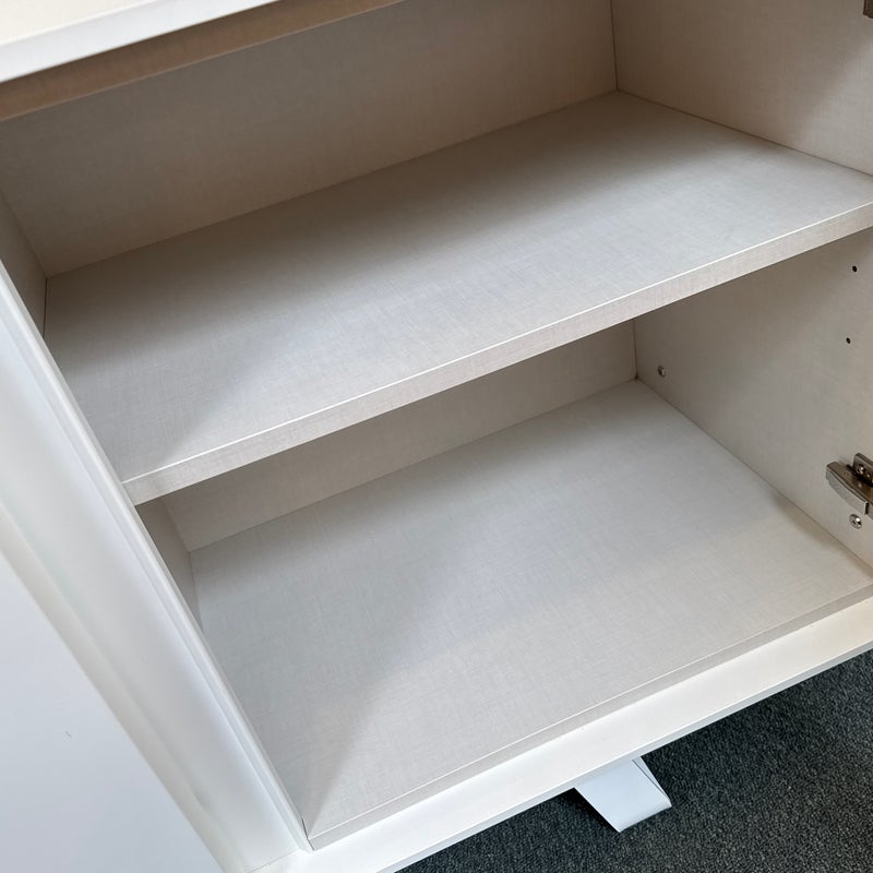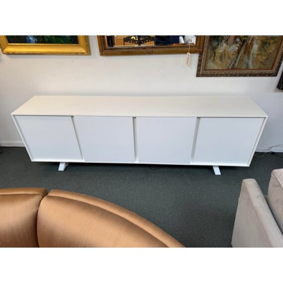 Design Plus Gallery presents a Secret Sideboard from Calligaris. This mid-century modern sideboard brings a touch of minimalist elegance to any interior in need of a Danish modern touch. Secret Sideboard is a promising choice for storing dinnerware amongst the sideboards three wooden frame cabinets with wood veneer shelves or to display a flat screen on the long top. Secret’s sturdy structure and soft-close mechanism system makes the sideboard a safe-haven for fragile belongings. It is in good condition for its usage with minimal signs of visible wear. Made in Italy.