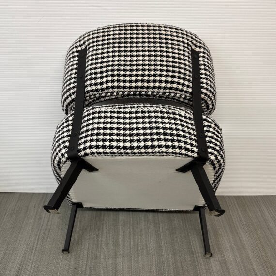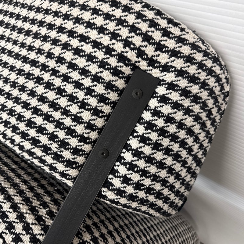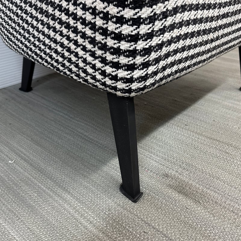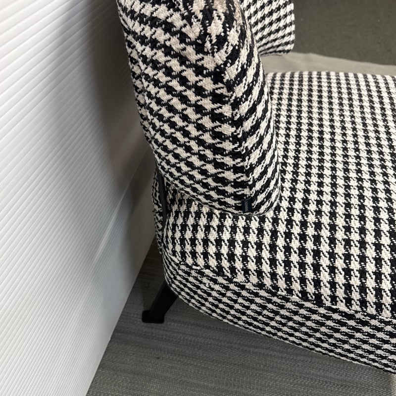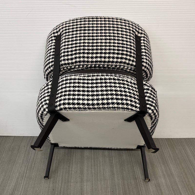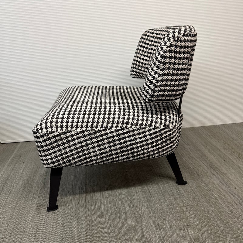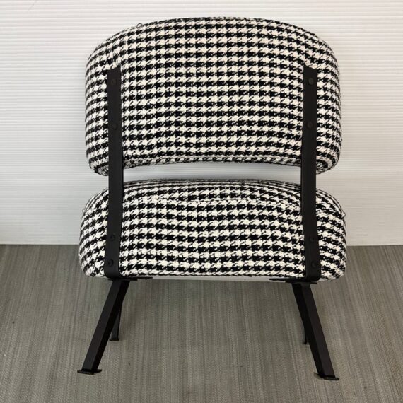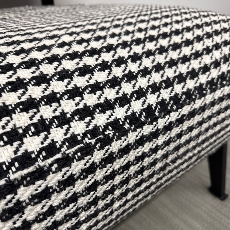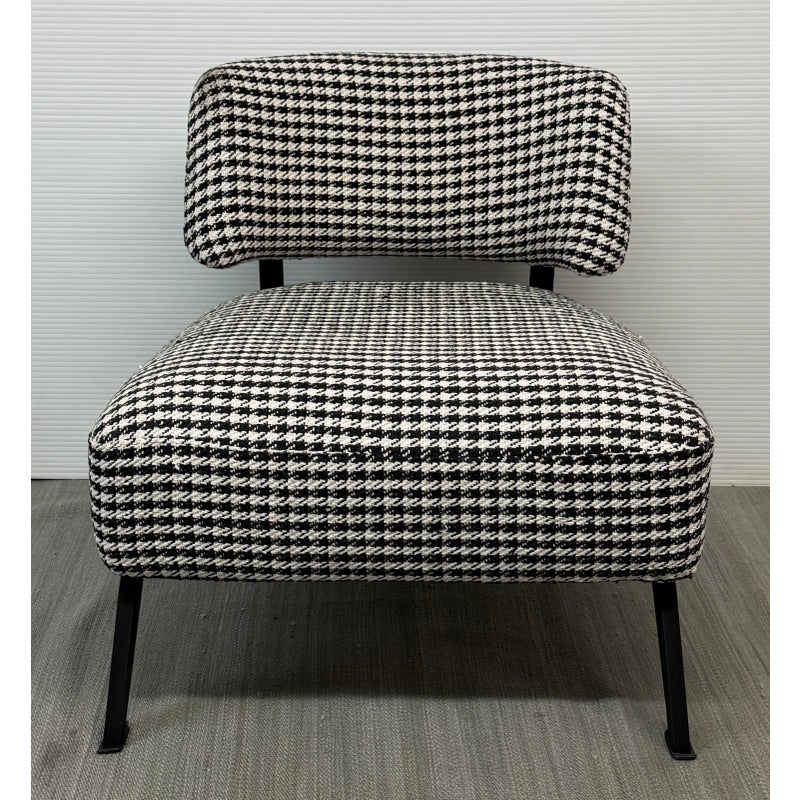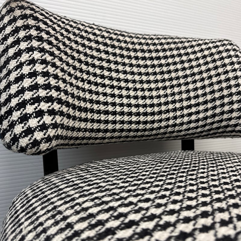 Design Plus Gallery presents a Custom Lounge Chair from Caravane. Crafted in France, the black and white houndstooth seating exudes a commanding presence. The generously cushioned and spacious design ensures unparalleled comfort, while the robust black iron frame elevates the chair to a new level of sophistication. Light wear; condition is good for age and use.