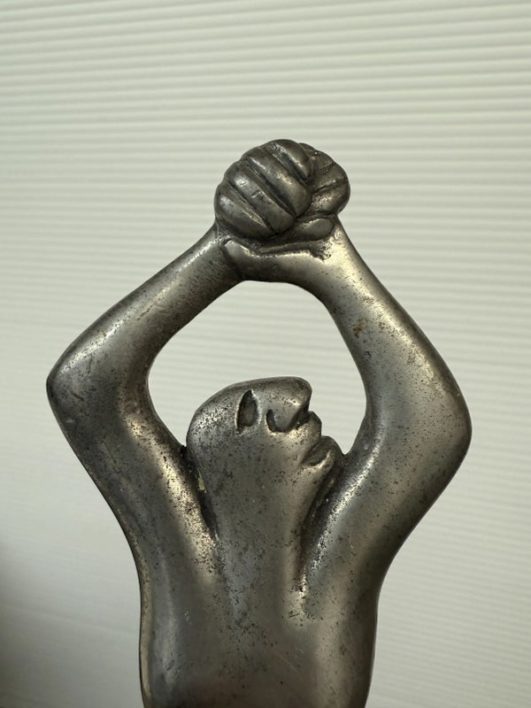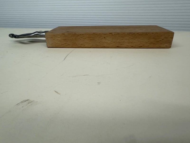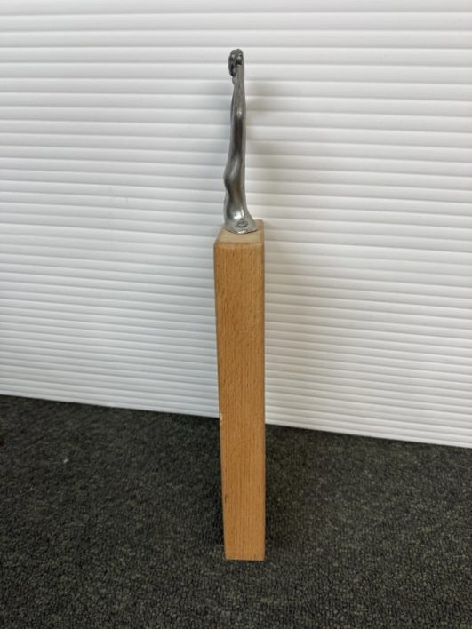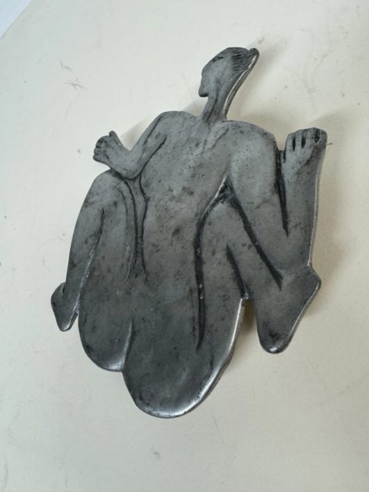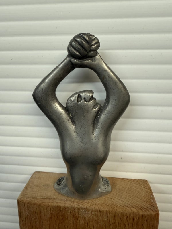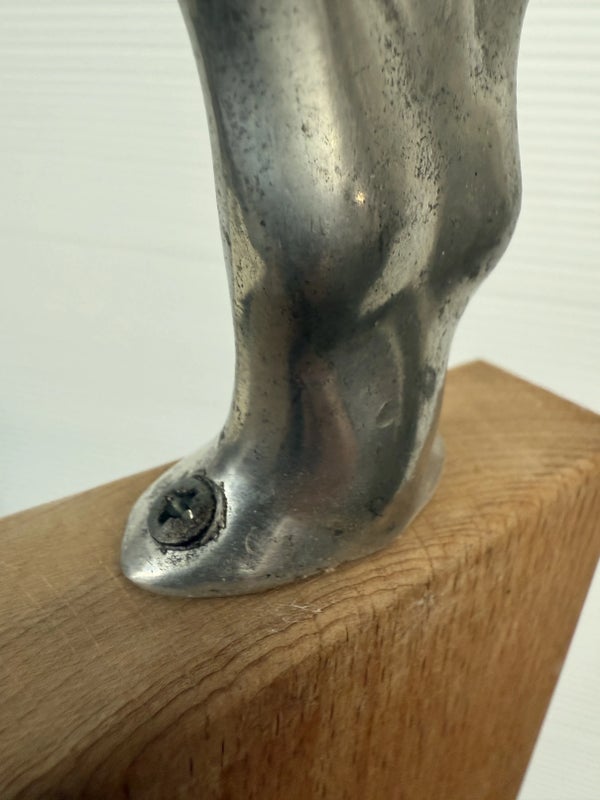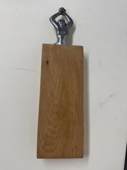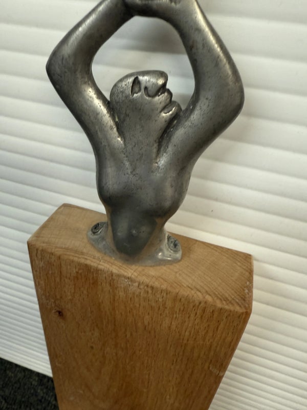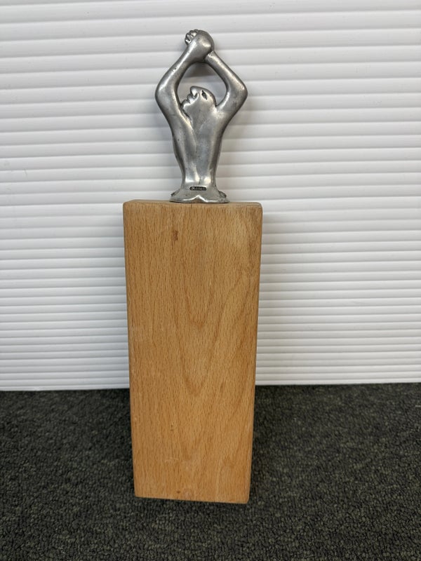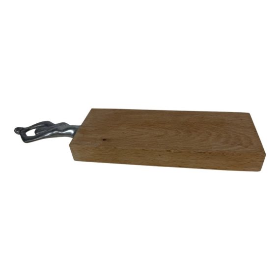 Design Plus Gallery presents a Woman Man Collection, Woman Serving Board by Carrol Boyes A small serving board with an iconic aluminium sculptural handle inspired by the human body . Carrol Boyes is a South African sculptress with a passion is to make art functional for everyday living. Her influences are elemental, tribal, and exalt the male/female sensual image. Her pieces are a combination of pewter, aluminum, wood and steel depending on its function and use. Ms. Boyes is an active advocate for womens issues throughout Africa and the world. This is a discontinued item and considered a signed collectors item. In good condition with wear that consistent with usage.