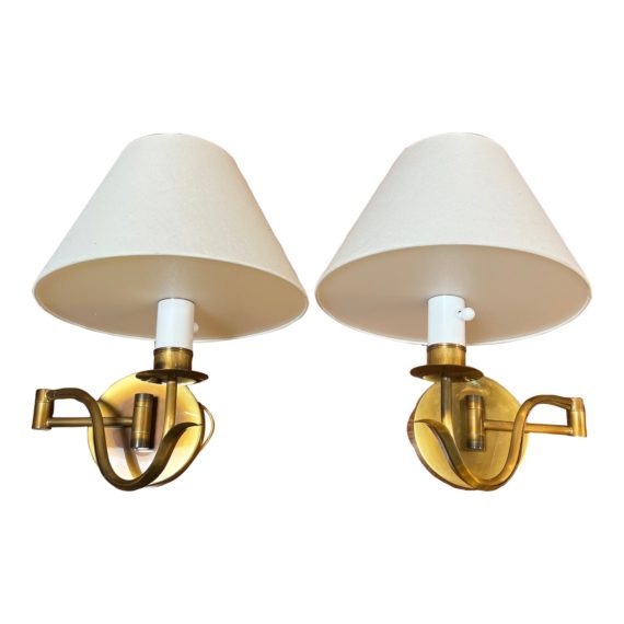 Casella Lighting Brass Repousee Swing Arm Wall Lamps, a Pair