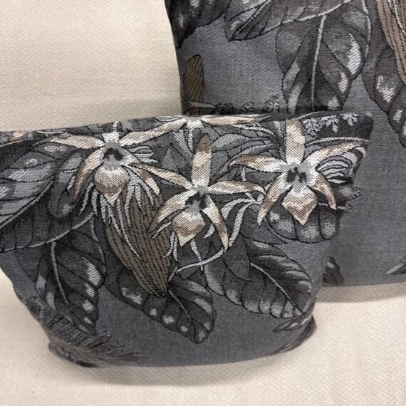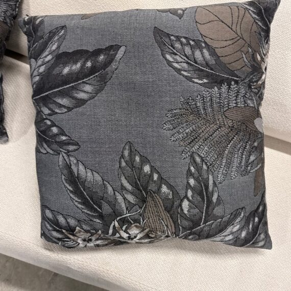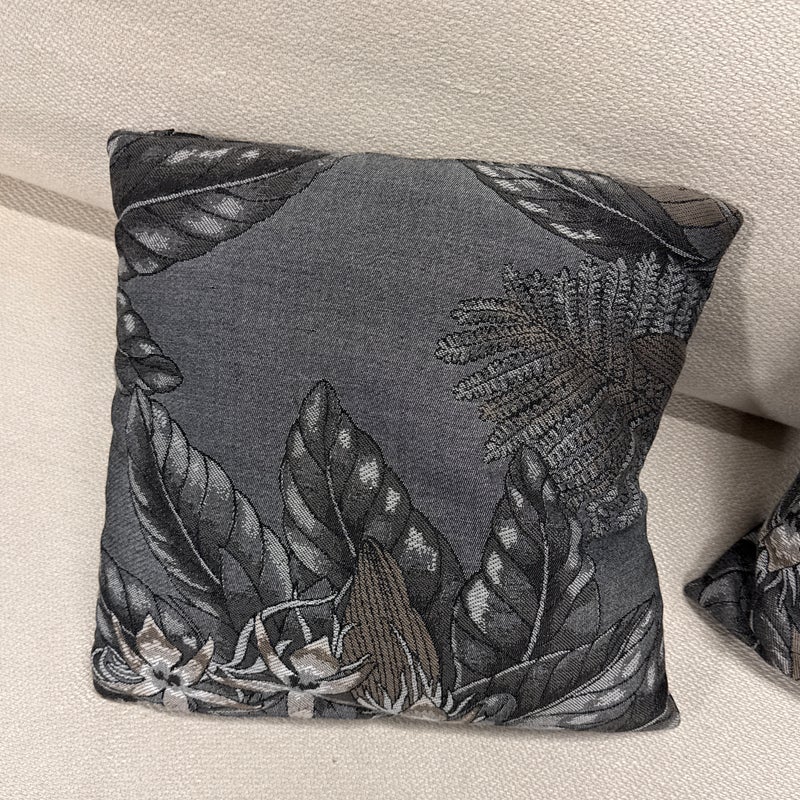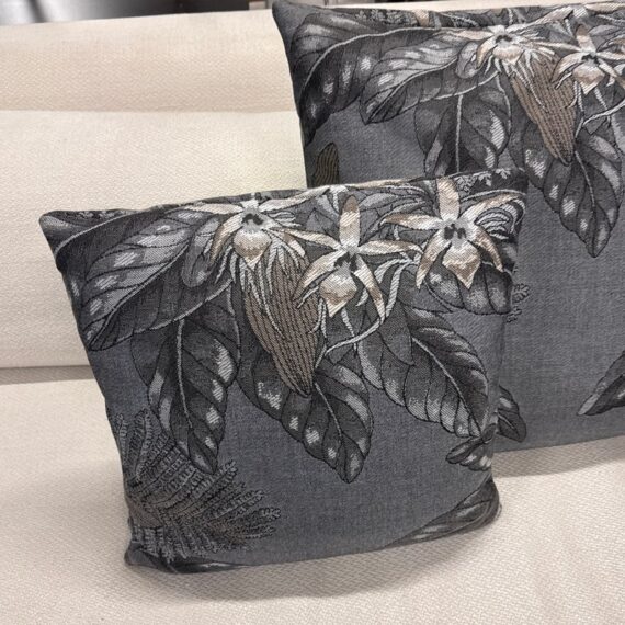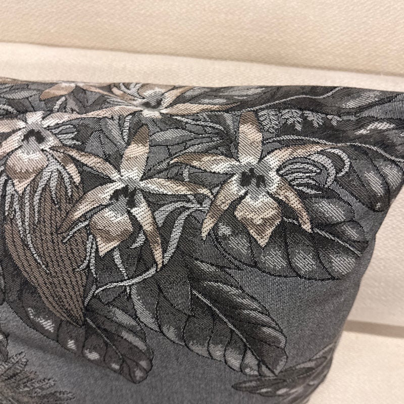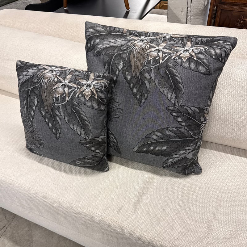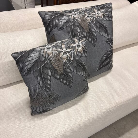 Design Plus Gallery presents a NEW Pair of Embroidered Decor Pillows by Cassina. Decorative cushions with richly embroidered tropical flower and foliage are small artworks in themselves. Beautiful way to add interest and dynamism to your furnishings, along with down-filled comfort. Showroom samples; condition is good.