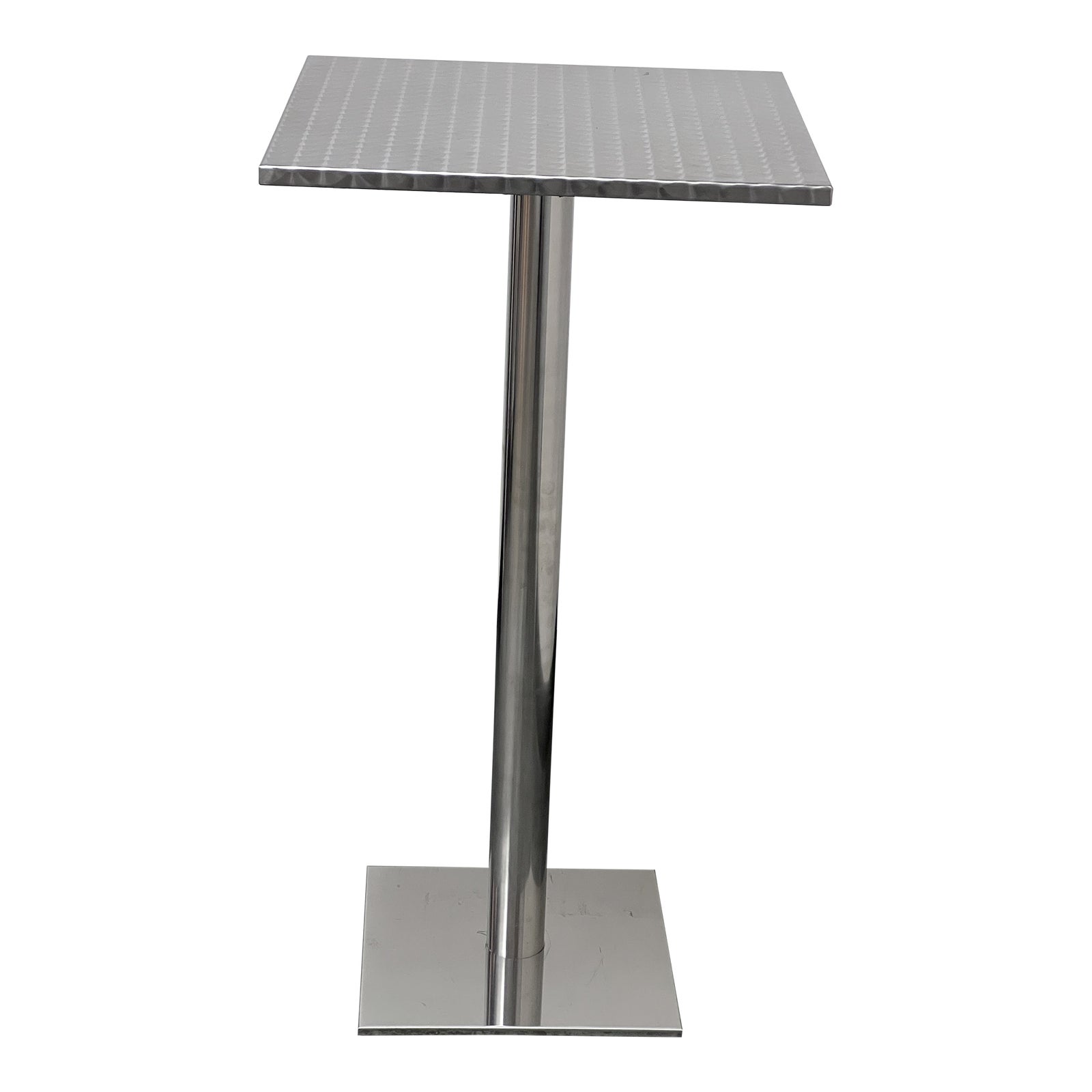 Design Plus Gallery presents a Stainless Steel Bistro Table from Cattelan Italia. Fan detail on table top is elegant on these industrial tables. Solid, and all stainless, these table will not budge. Some surface conditions but overall in good condition. This was a Showroom Sample.
