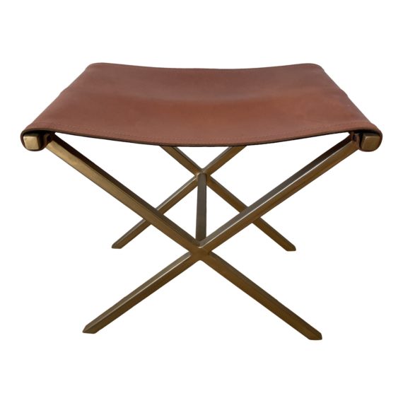 Design Plus Gallery presents a Directors Cut Folding Bench. A rich leather warms the director’s stool in old-school style. Slim iron frame and X-shaped legs support sumptuous seat of full-grain, semi-aniline dyed leather that will patina with character over time. Pull up to dine, use sofa side or double them up at the foot of the bed. The iron frame with antique brass finish. Natural patin from usage. Made in India