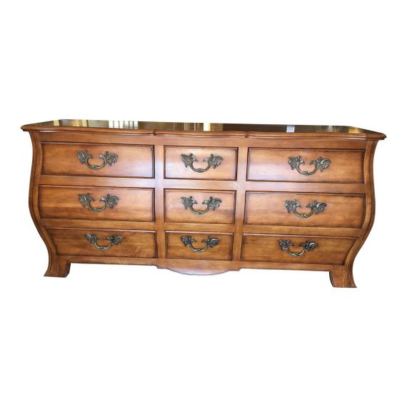 Design Plus Consignment Gallery presents the Charleaux Dresser from Century Furniture. Featuring rich wood grain finish, graceful curves, antiqued fittings, and the fine joinery you would expect from Century. The nine drawers offer expansive storage in an elegant silhouette.