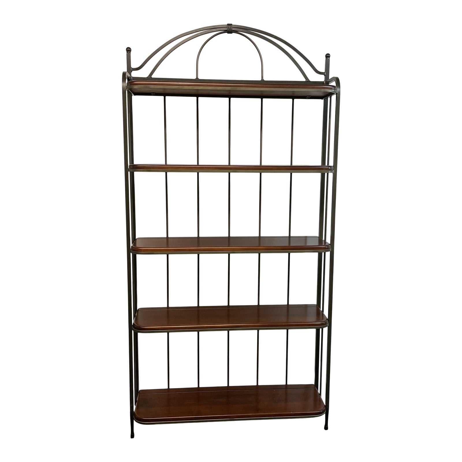 Design Plus Gallery presents a Classic Etagere by Charleston Forge. Known for craftsmanship that is as stylish as it is sturdy, Charleston Forge has long been recognized as the industry leader in classically styled Baker’s Racks. The five maple shelves, in a lightly distressed rich finish, are supported and topped by gentle curves in solid iron that have been hand-crafted in North Carolina.