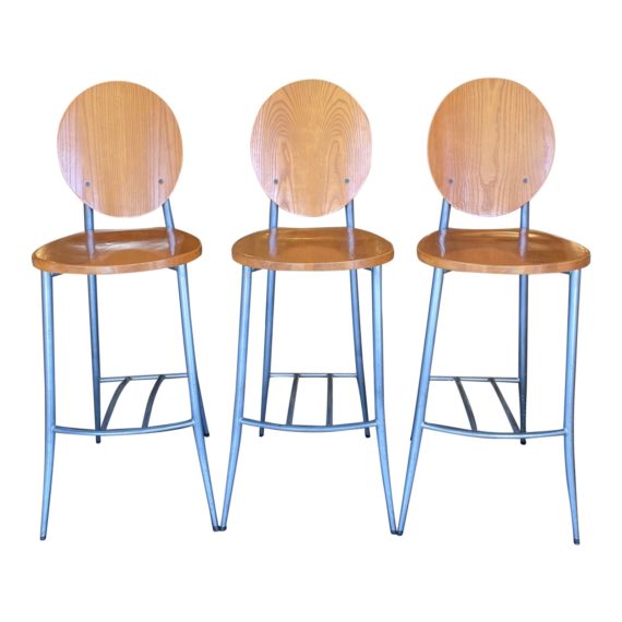 Cherry Finish & Aluminum Base Barstools – Set of 3