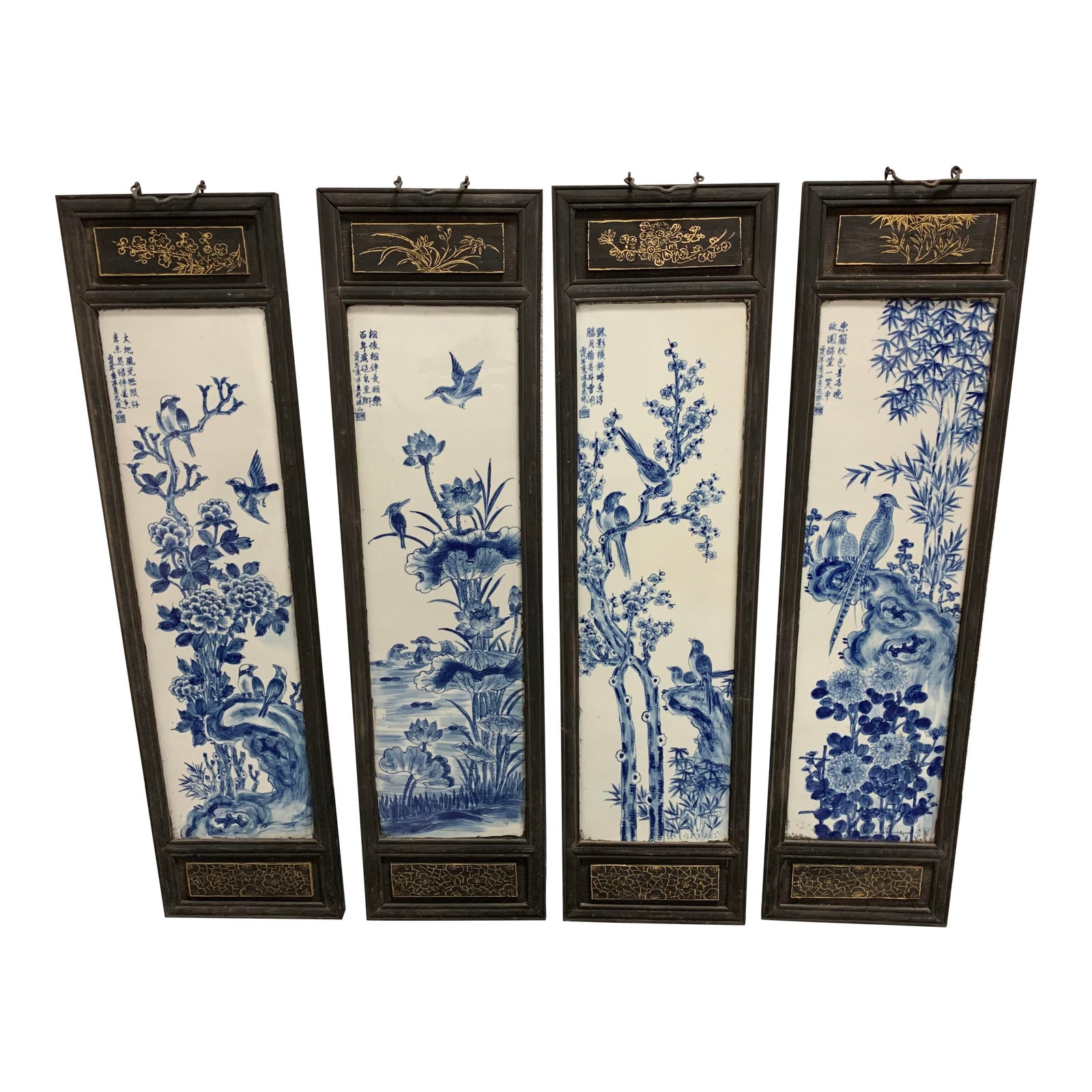 Chinoiserie Hand Painted Ceramic Seasonal Wall Hangings – Set of 4