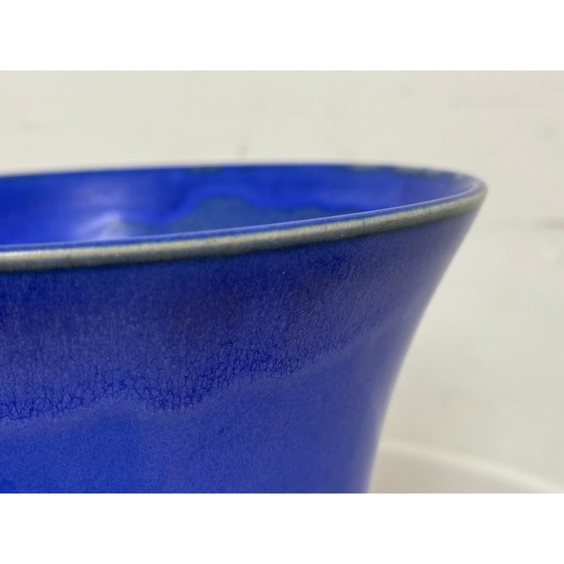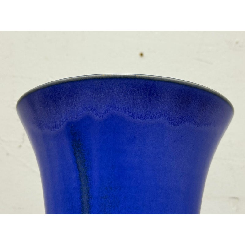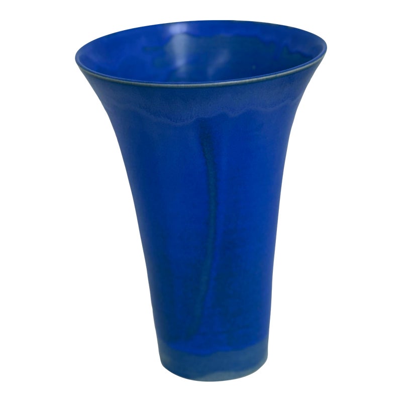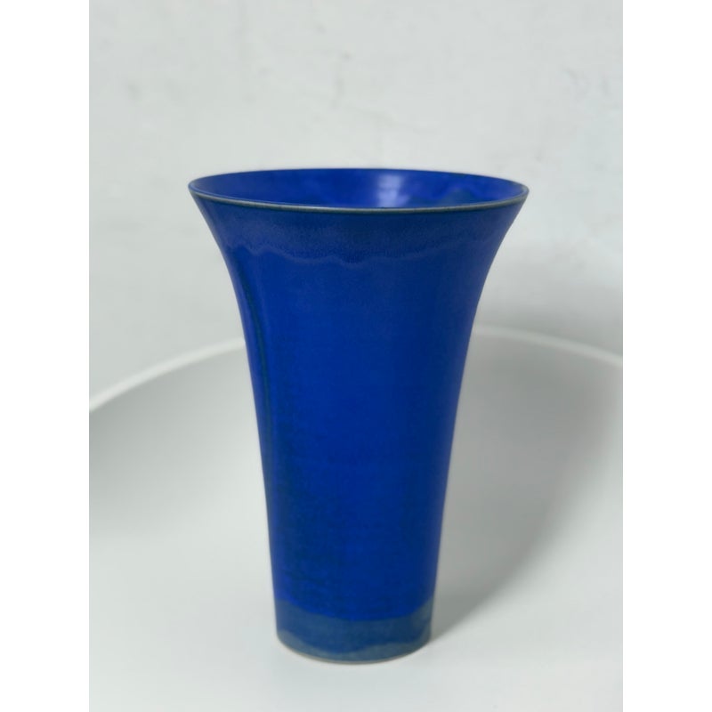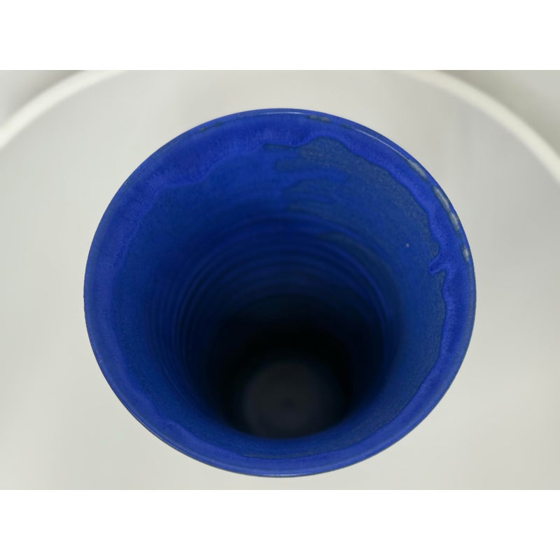 Design Plus Gallery presents a One of a Kind Cobalt Blue Vase Made by Christine Perrochon. An extraordinary color of blue with ribbons of black are hand glaze onto the high heat fire process. Artist signature on base. In good condition with no chips or cracks.