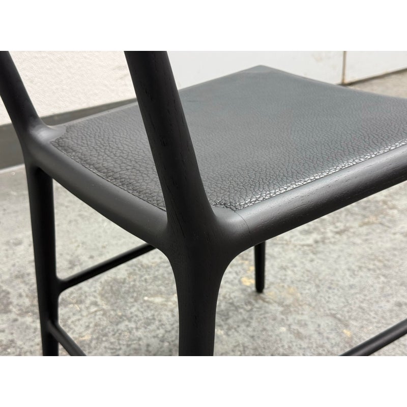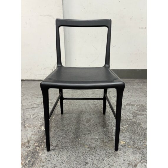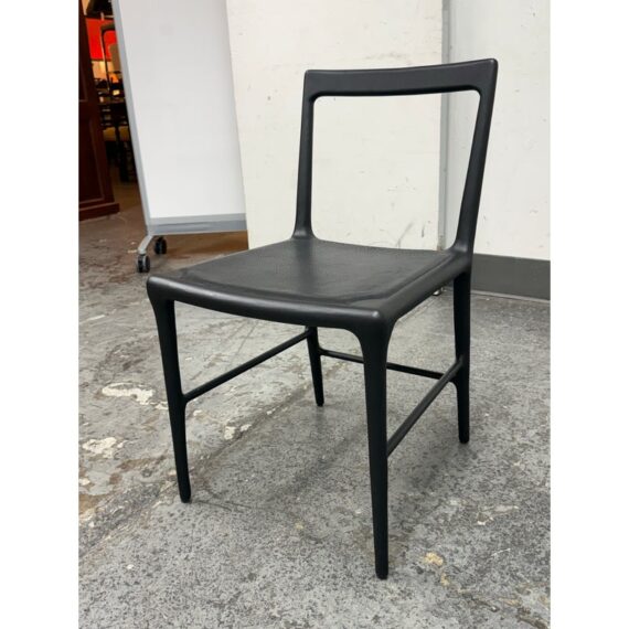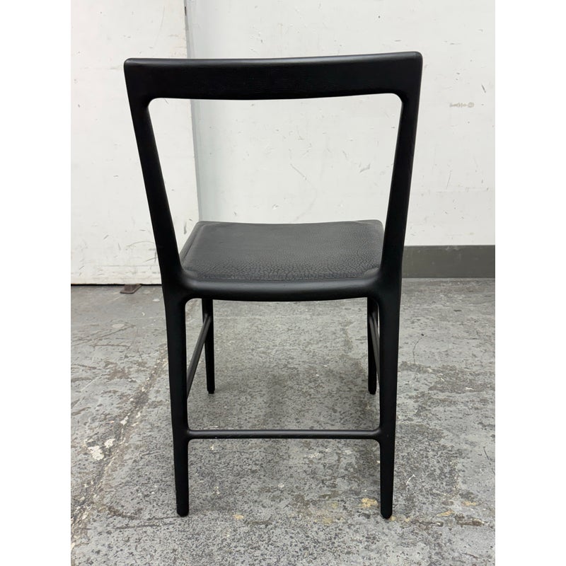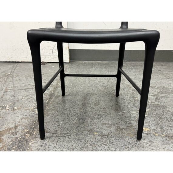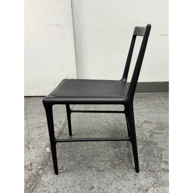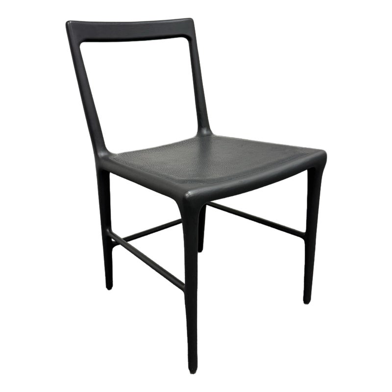 Design Plus Gallery presents the OUD Side Chair from Christophe Delcourt. The exquisite and graceful dining chair, rendered in black oak with leather seat, seems as though it was grown in a forest rather than made in a shop. This seating piece is an astonishing example of designer Christophe Delcourt’s devotion to honoring materials and traditional French craftsmanship, while drawing inspiration from the natural world. We like the warmth and elegance this chair brings to any room in your home. In good condition, visible and minimal wear from usage. Made in France.