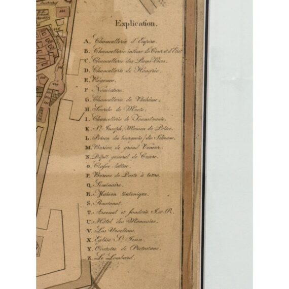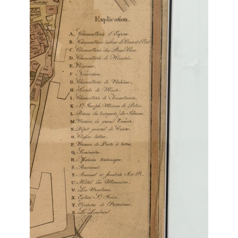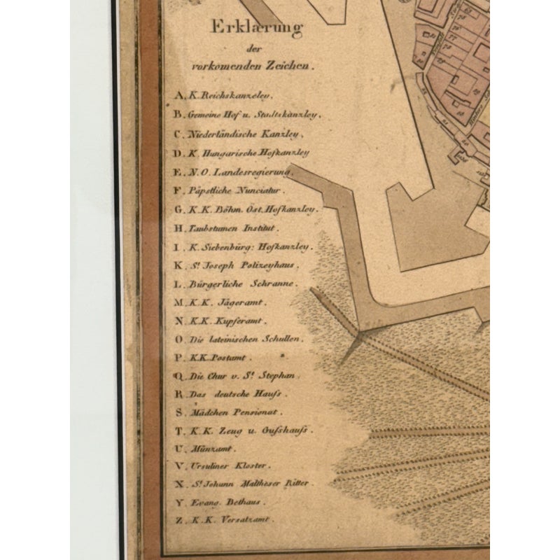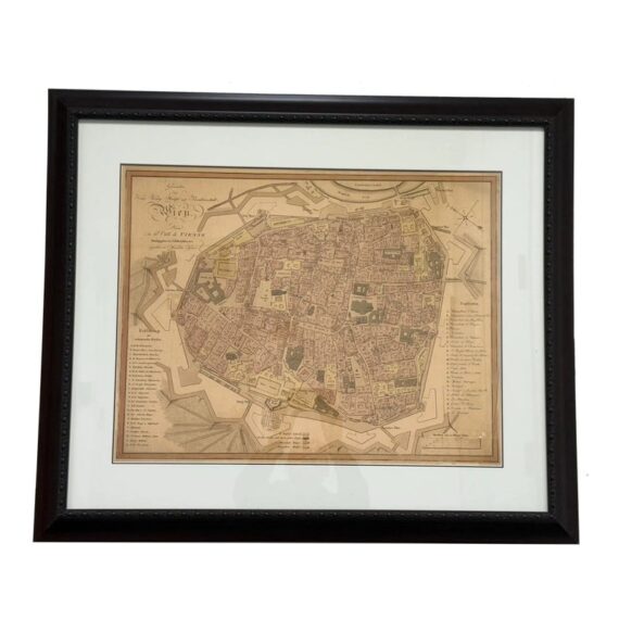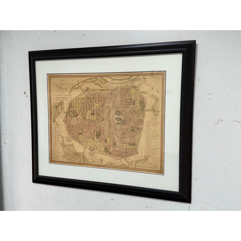 Design Plus Gallery presents a City Map of Vienna and Suburbs from 1805. All written in Italian, you get a planned view of Viennas formation in the earliest dates of the 19th Century. Professionally framed, matted and in glass. Overall good condition.